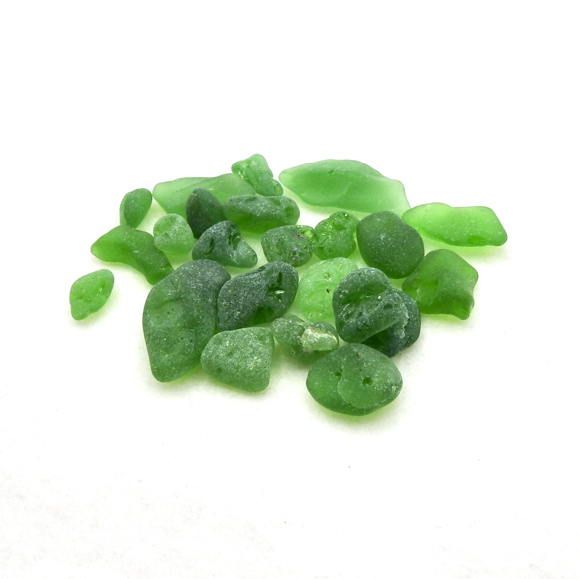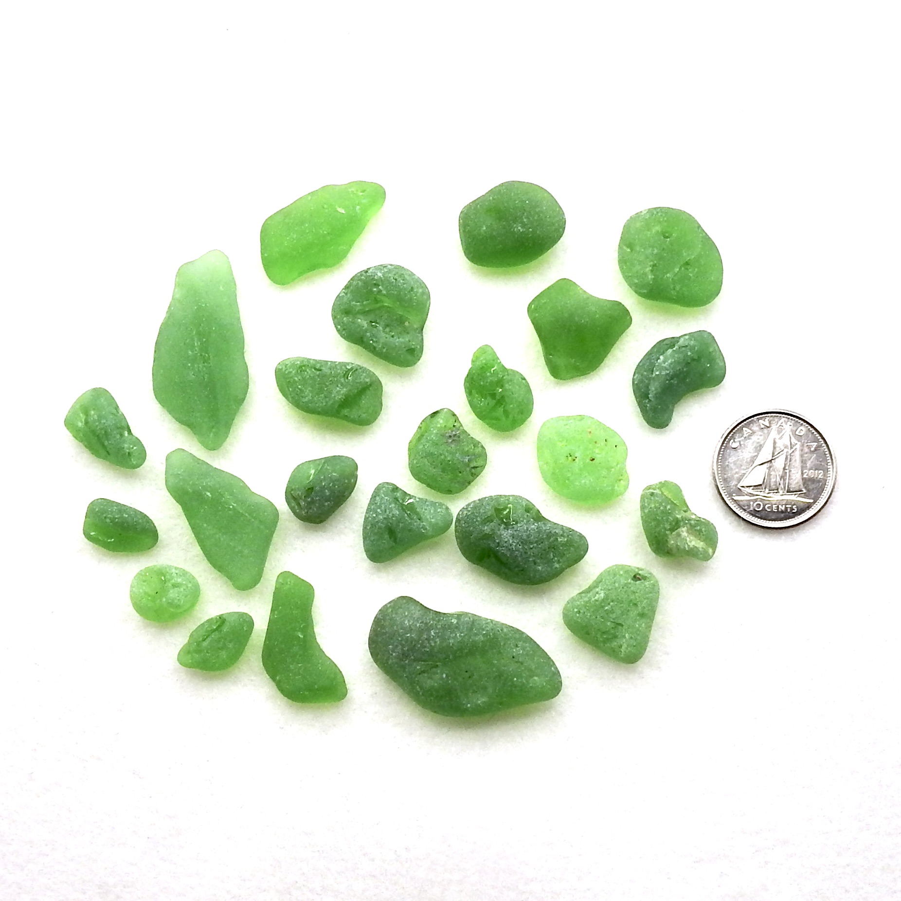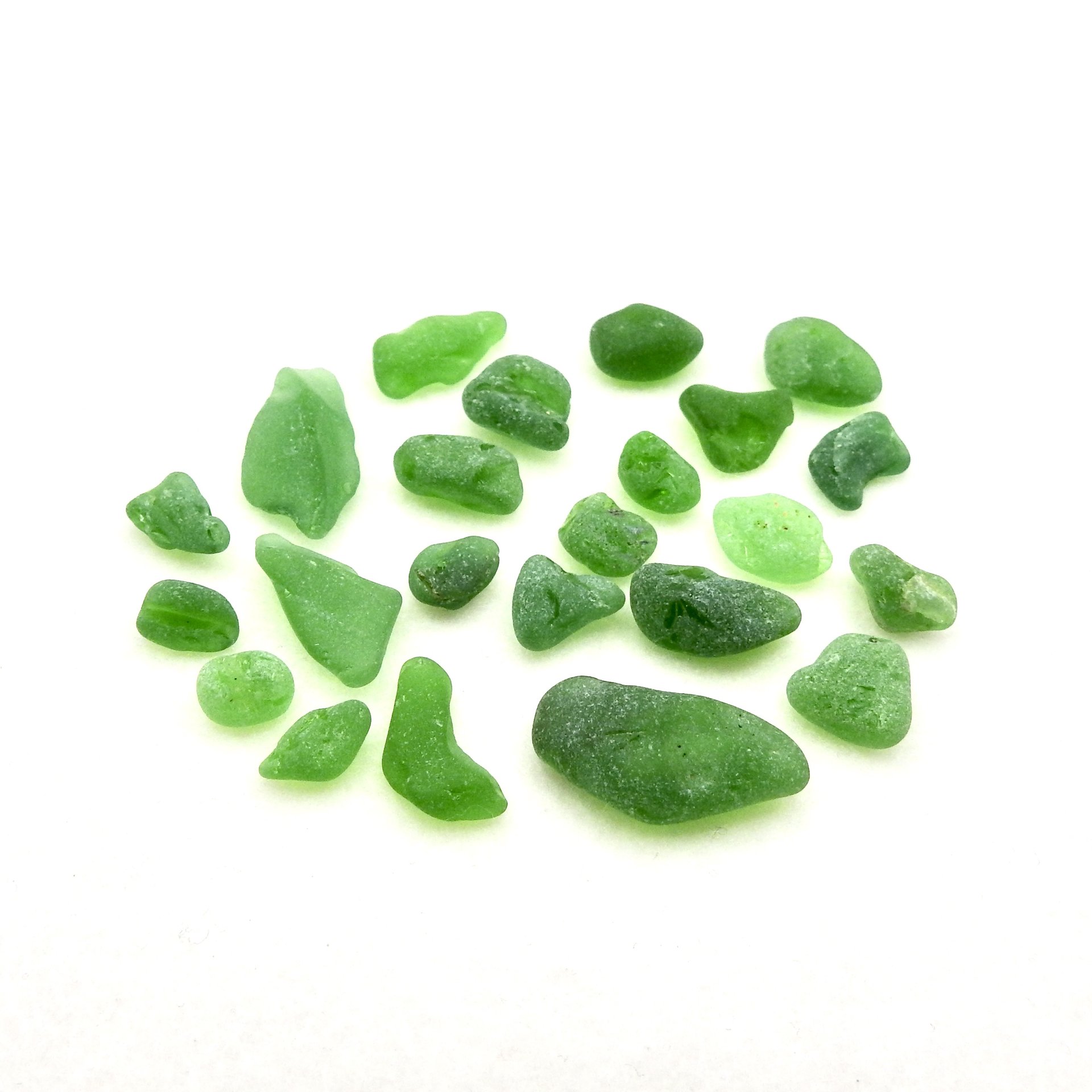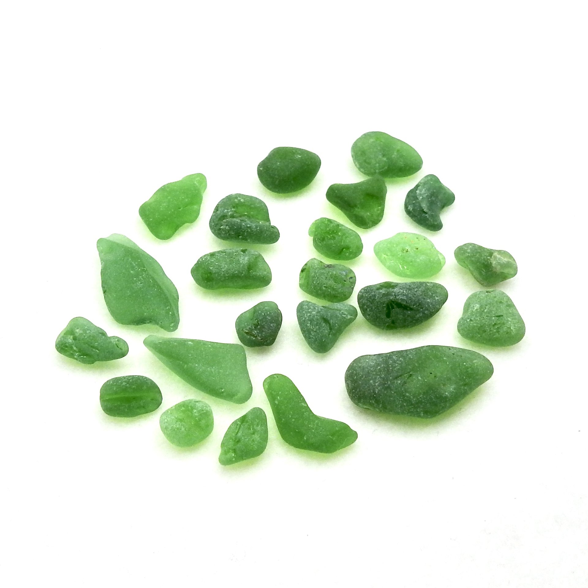 Genuine bonfire sea glass pieces, set of 23, in shades of green.