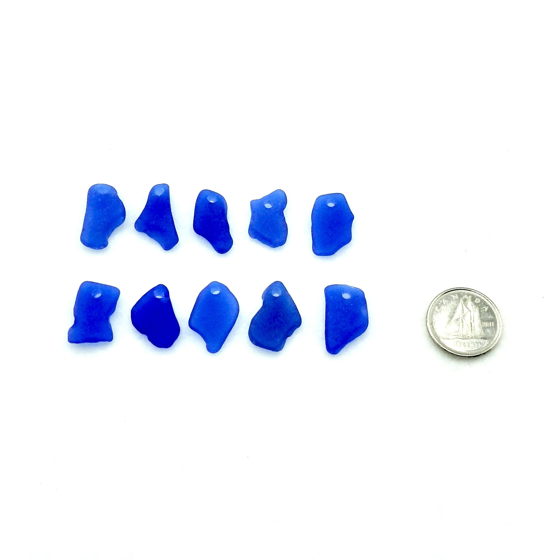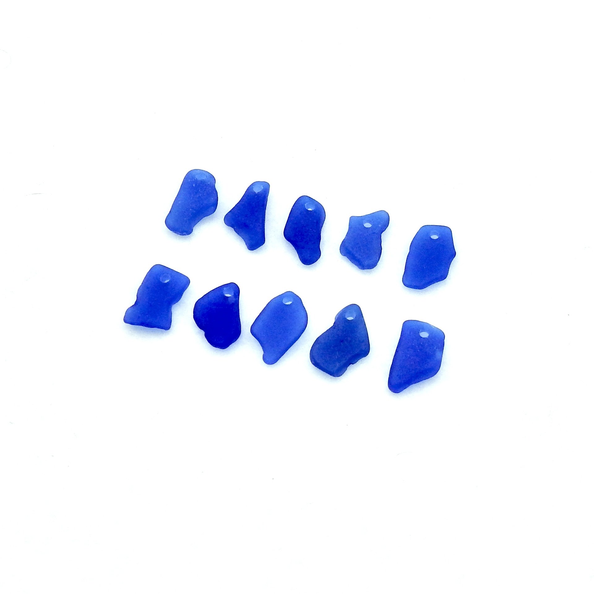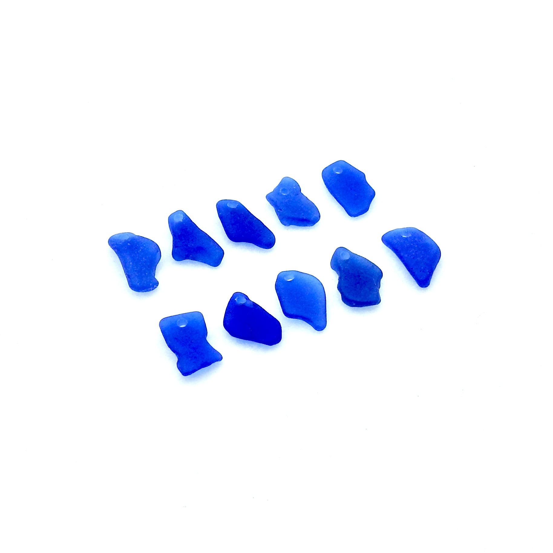 Genuine sea glass charms in unusual shapes, set of 10, in shades of cobalt blue for jewelry making or other beached themed crafts.