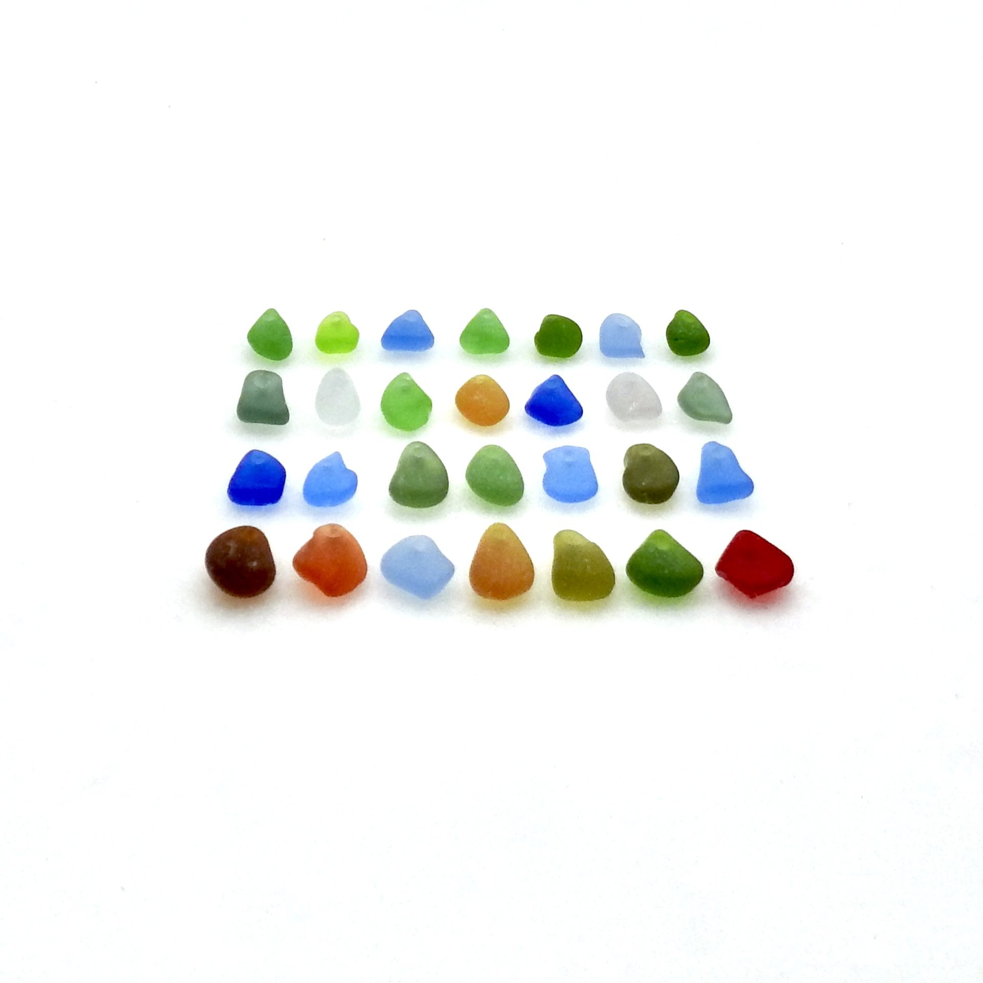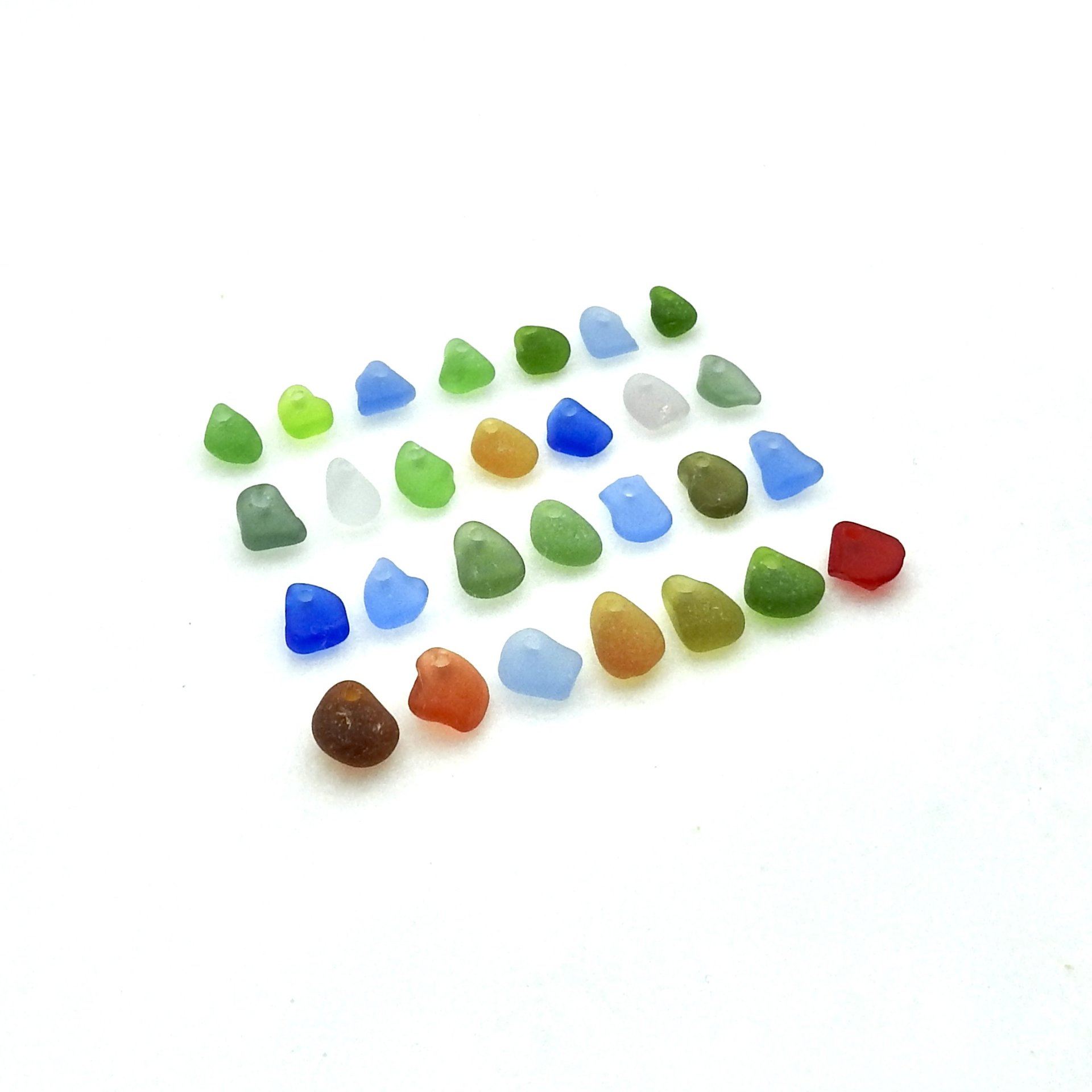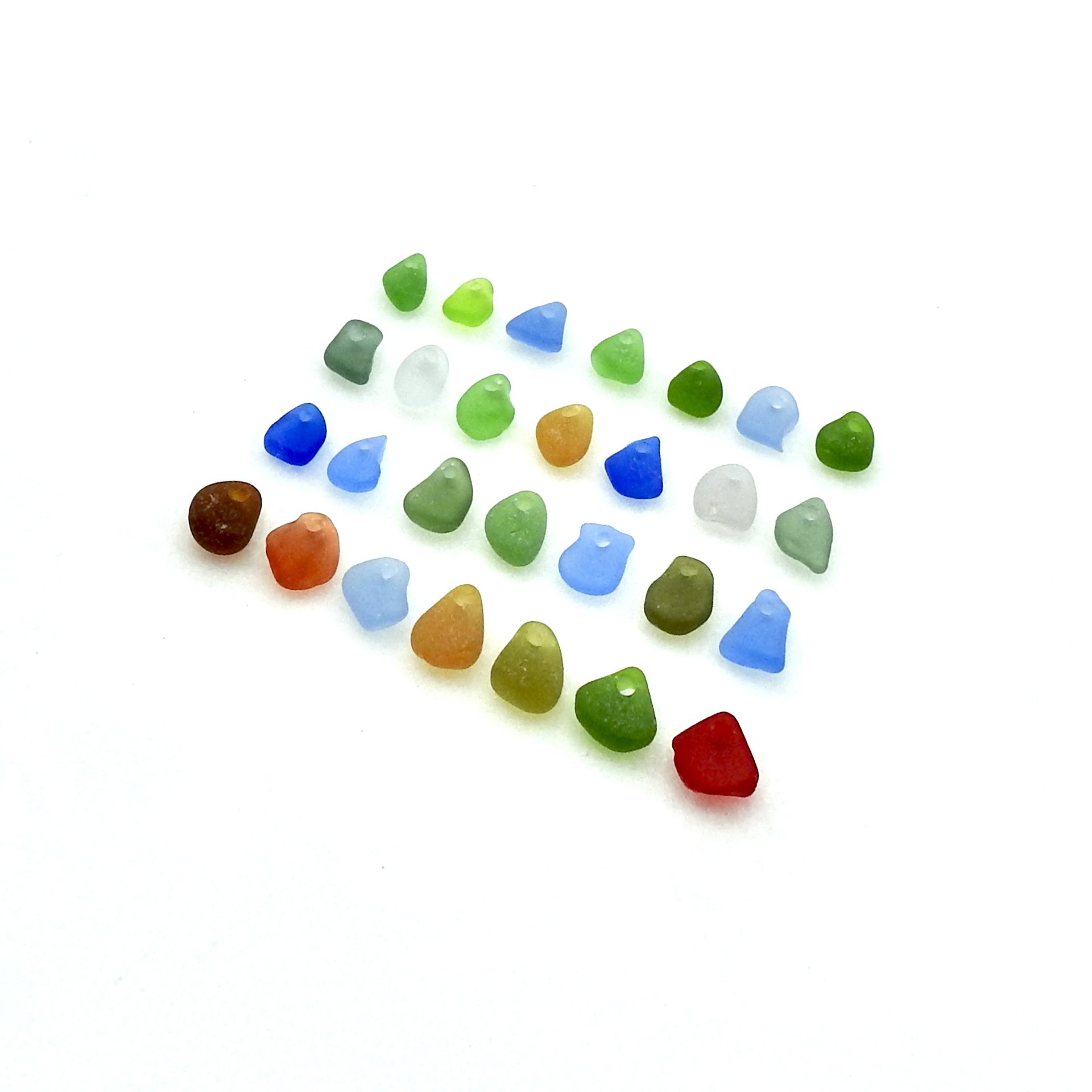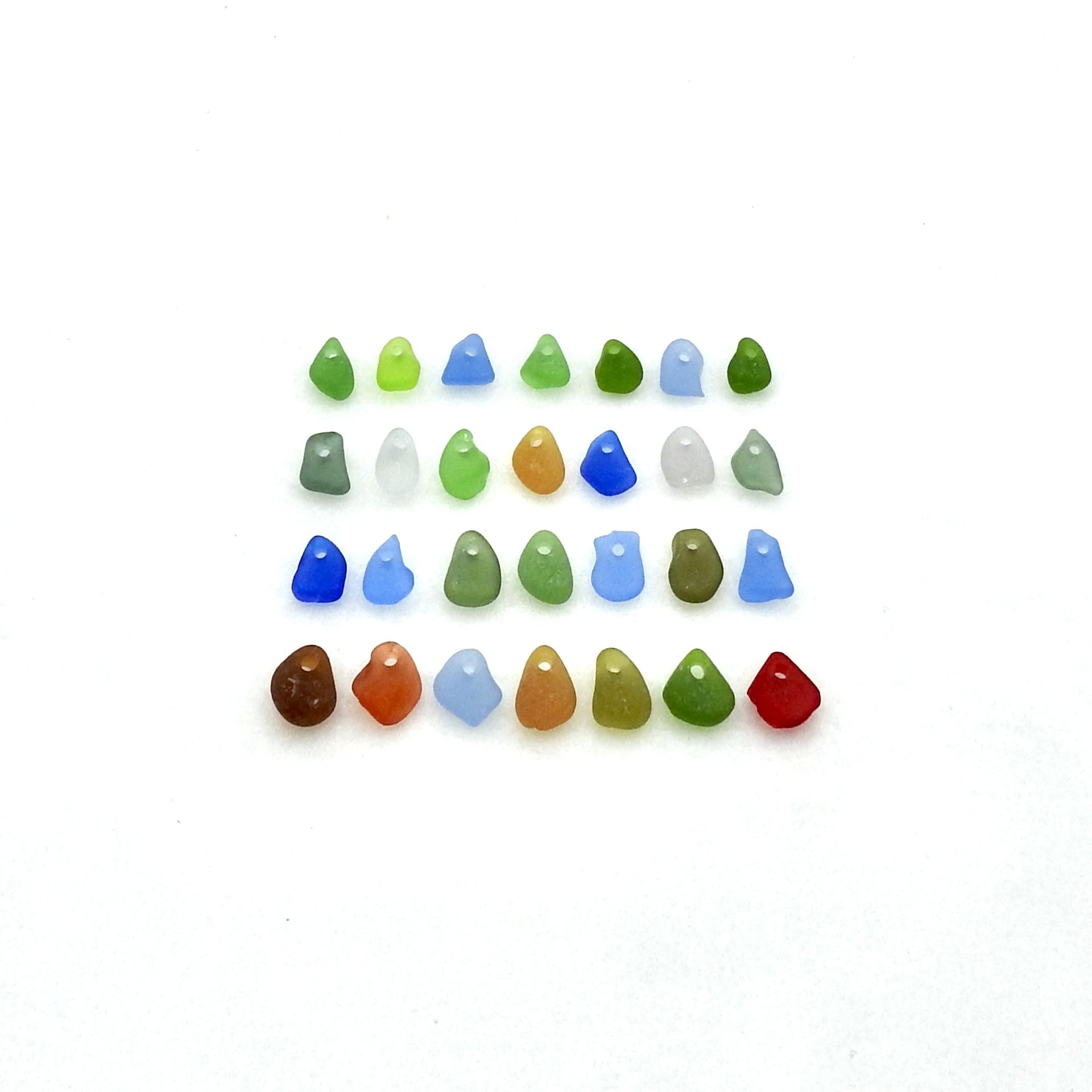 Authentic sea glass beads, set of 28 with top drilled holes for jewelry making, sew on fringe or other do it yourself craft projects.