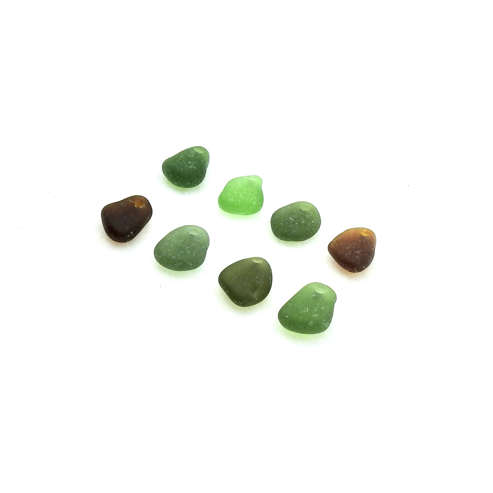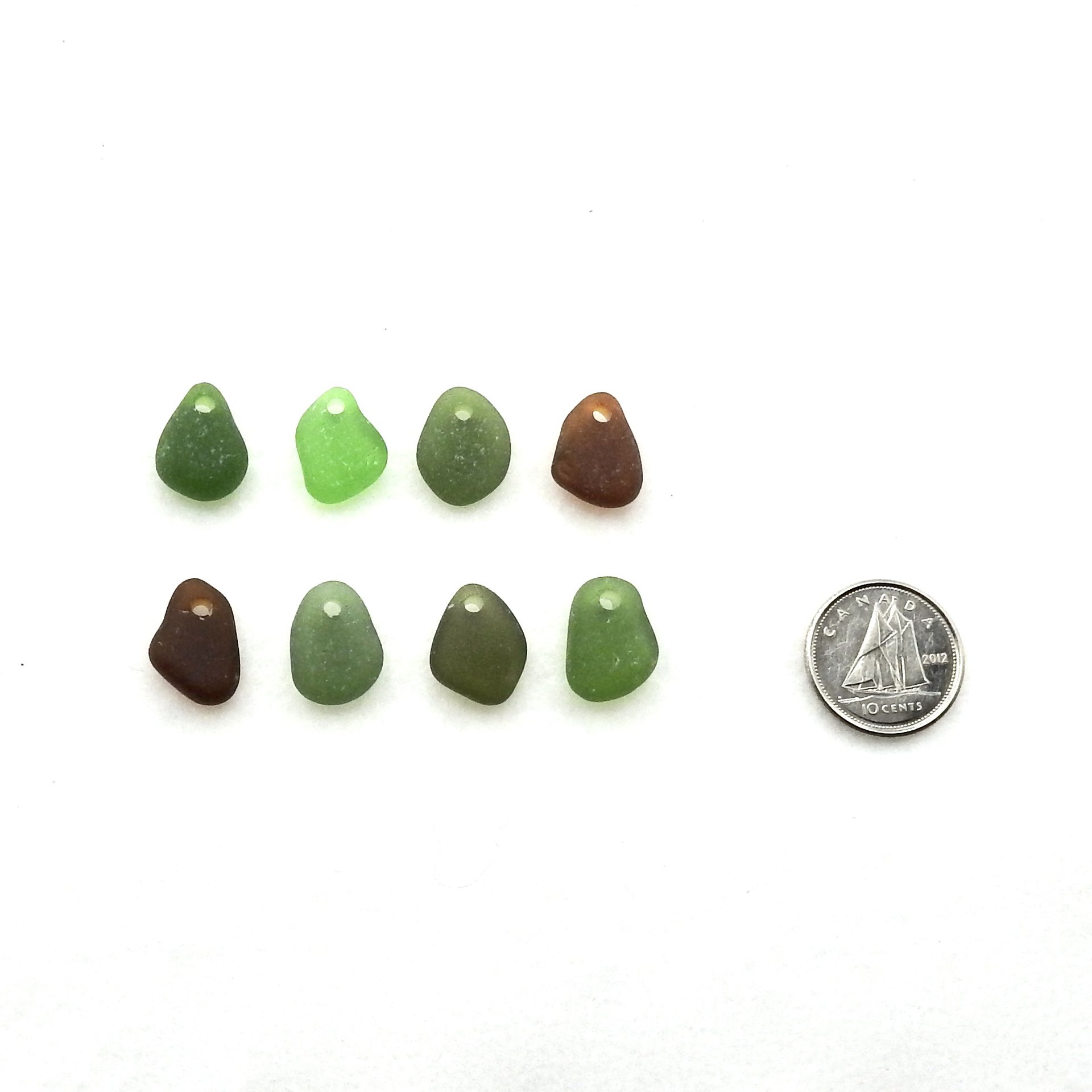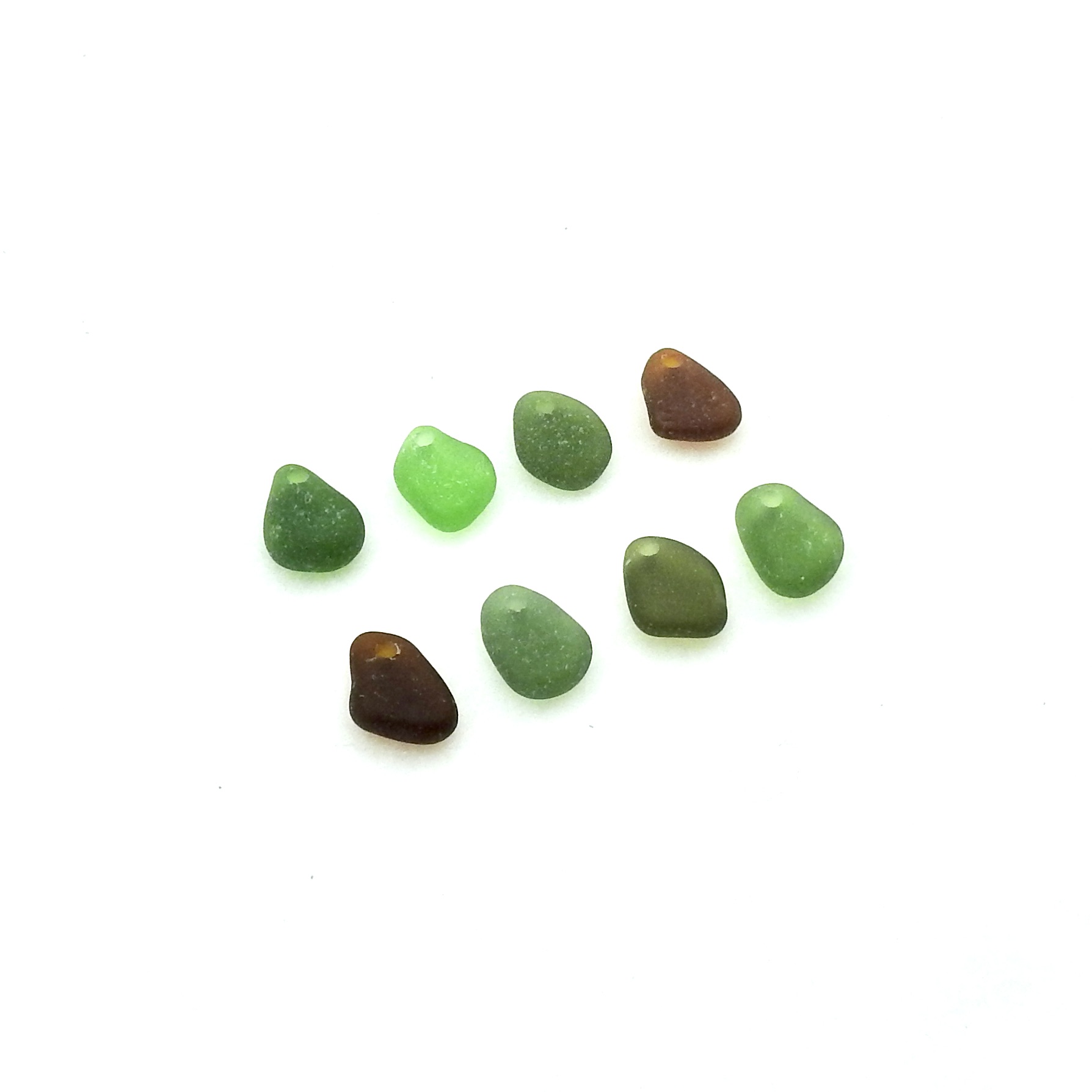 Drilled Sea Glass Charms Green Brown Colours Beach Beads for Jewelry Making