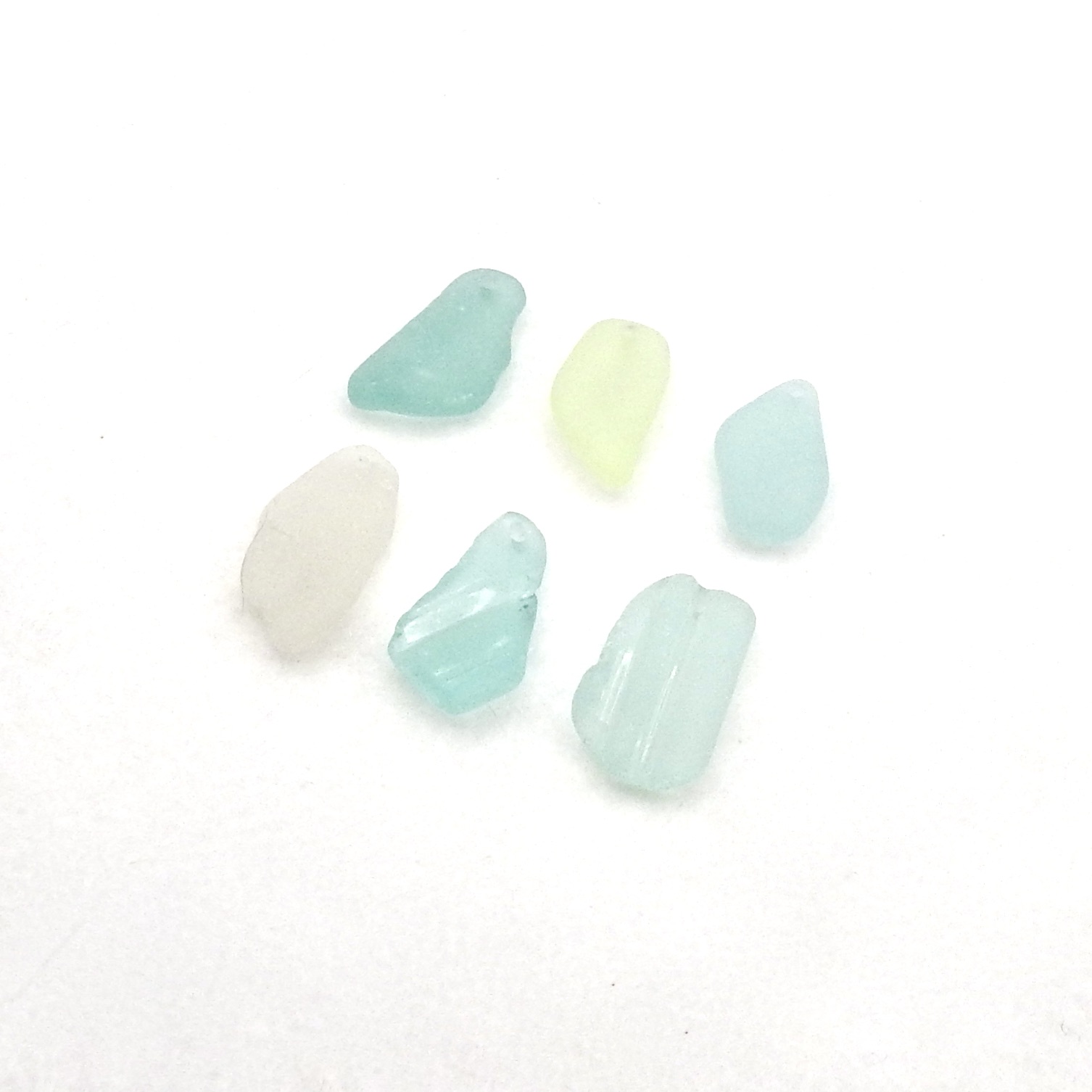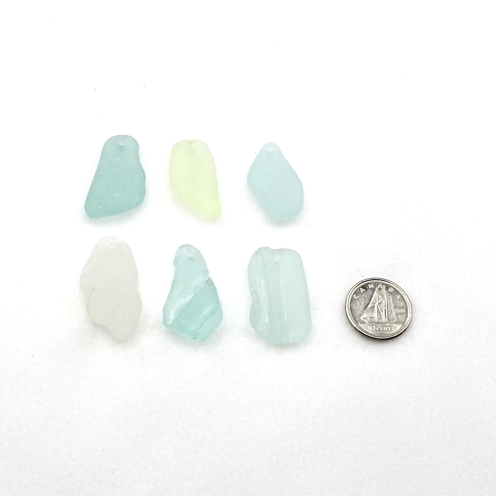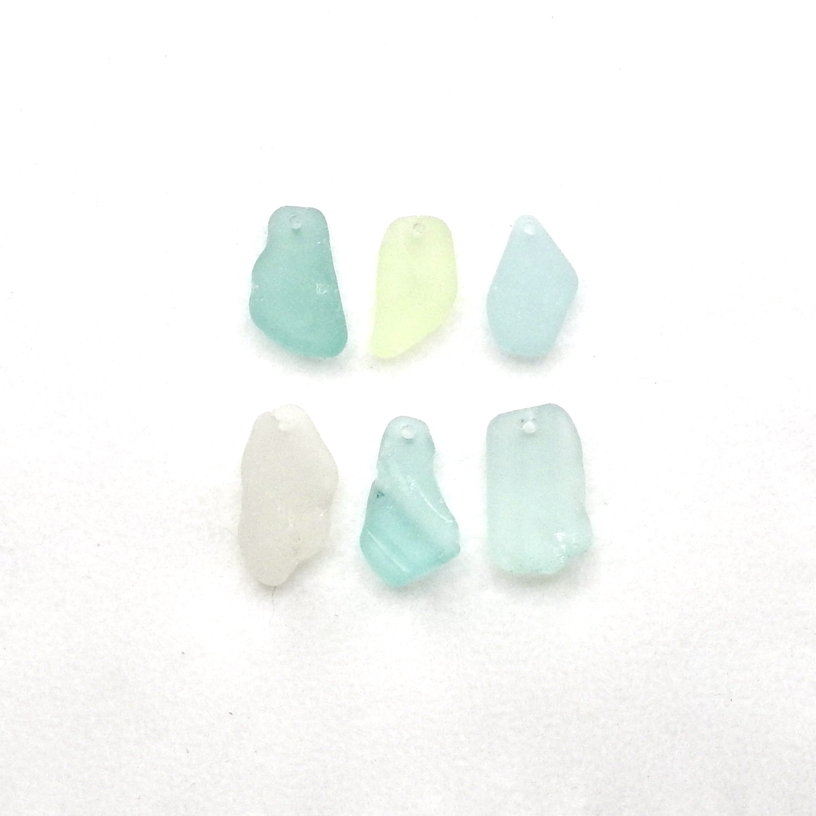 Set of 6 genuine sea glass pendants in pastel colours with top drilled holes for jewelry making, keychains, sun catchers or other beach themed crafts.