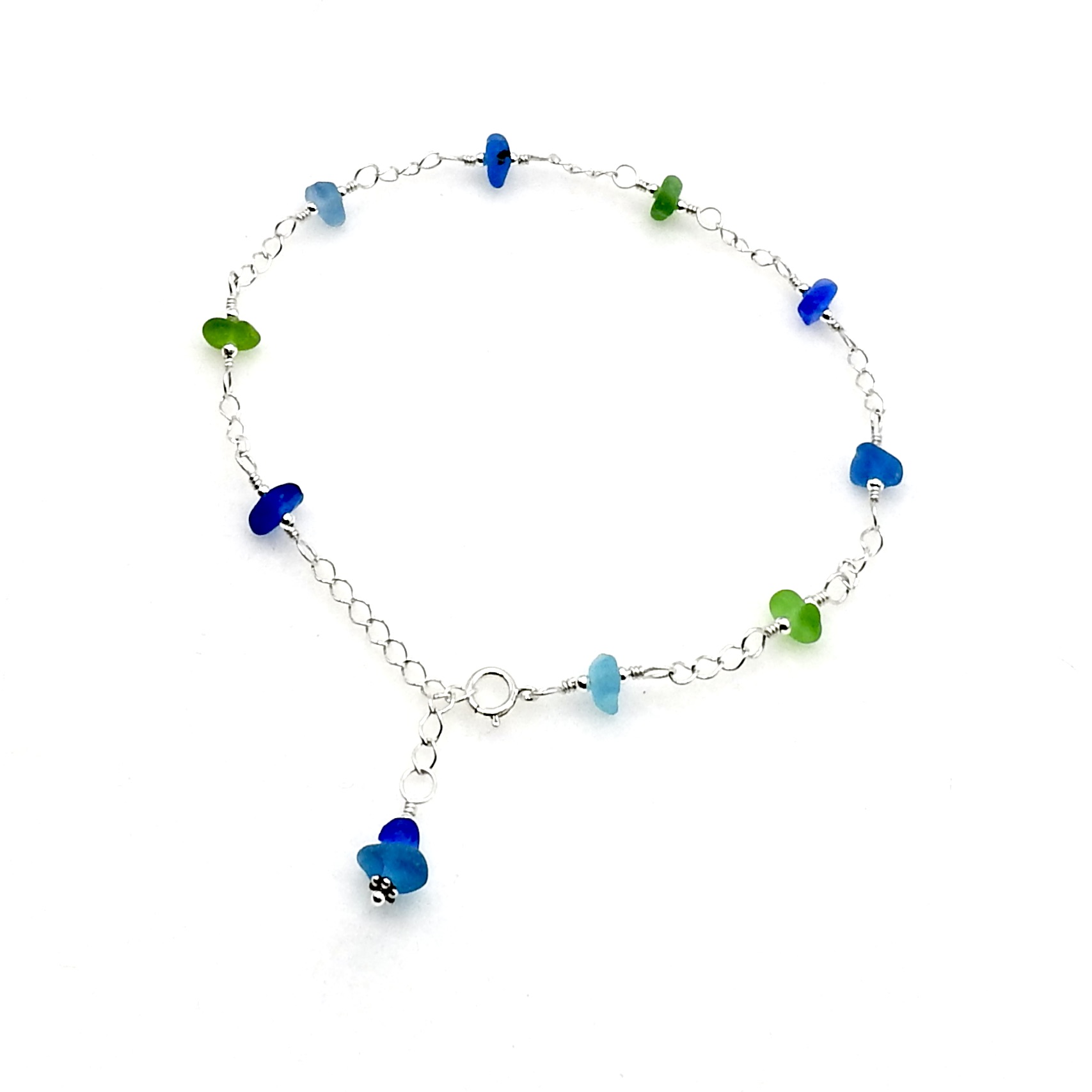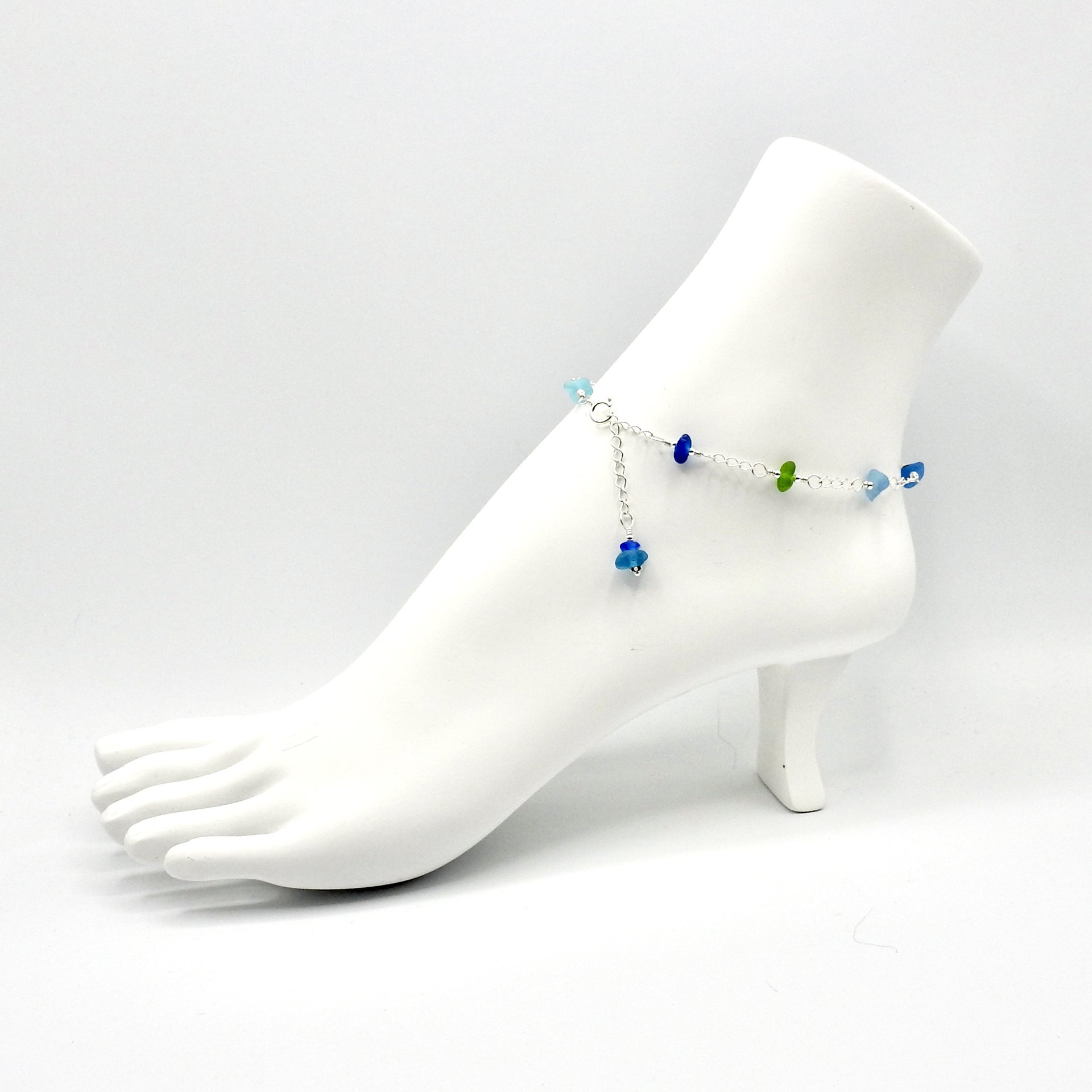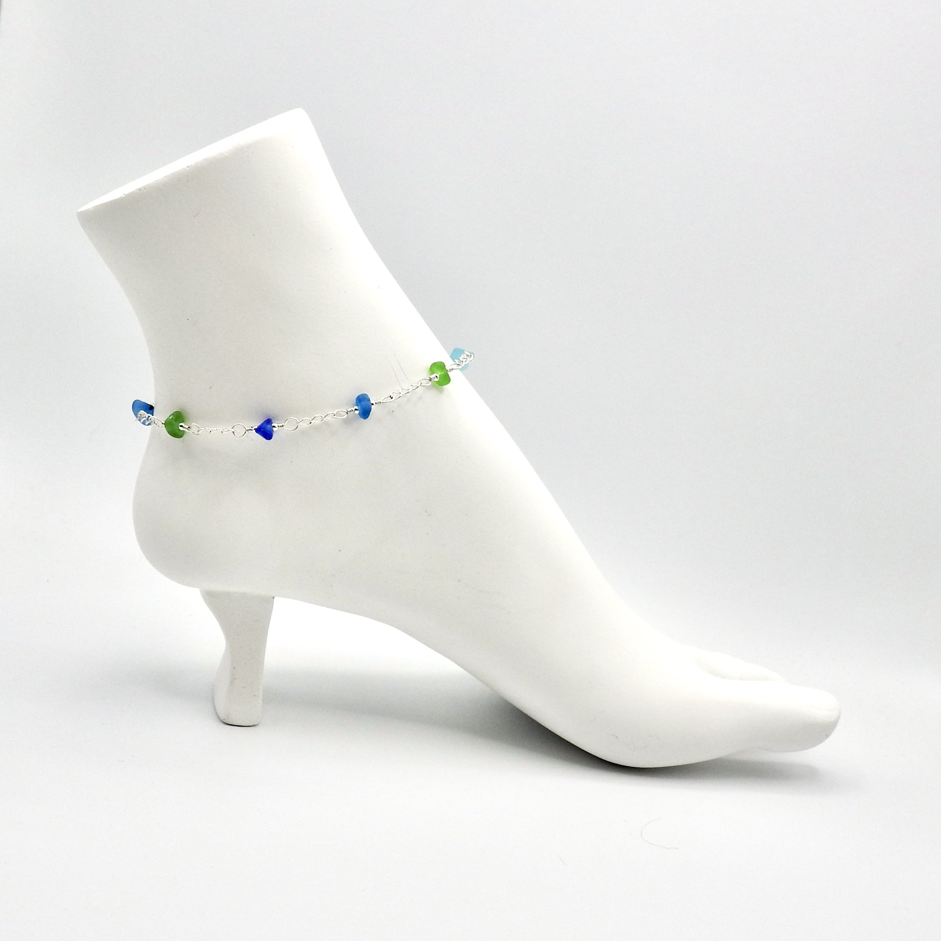 Sea Glass Anklet Bracelet Blue Green Women's Handmade Jewelry Gifts Canada