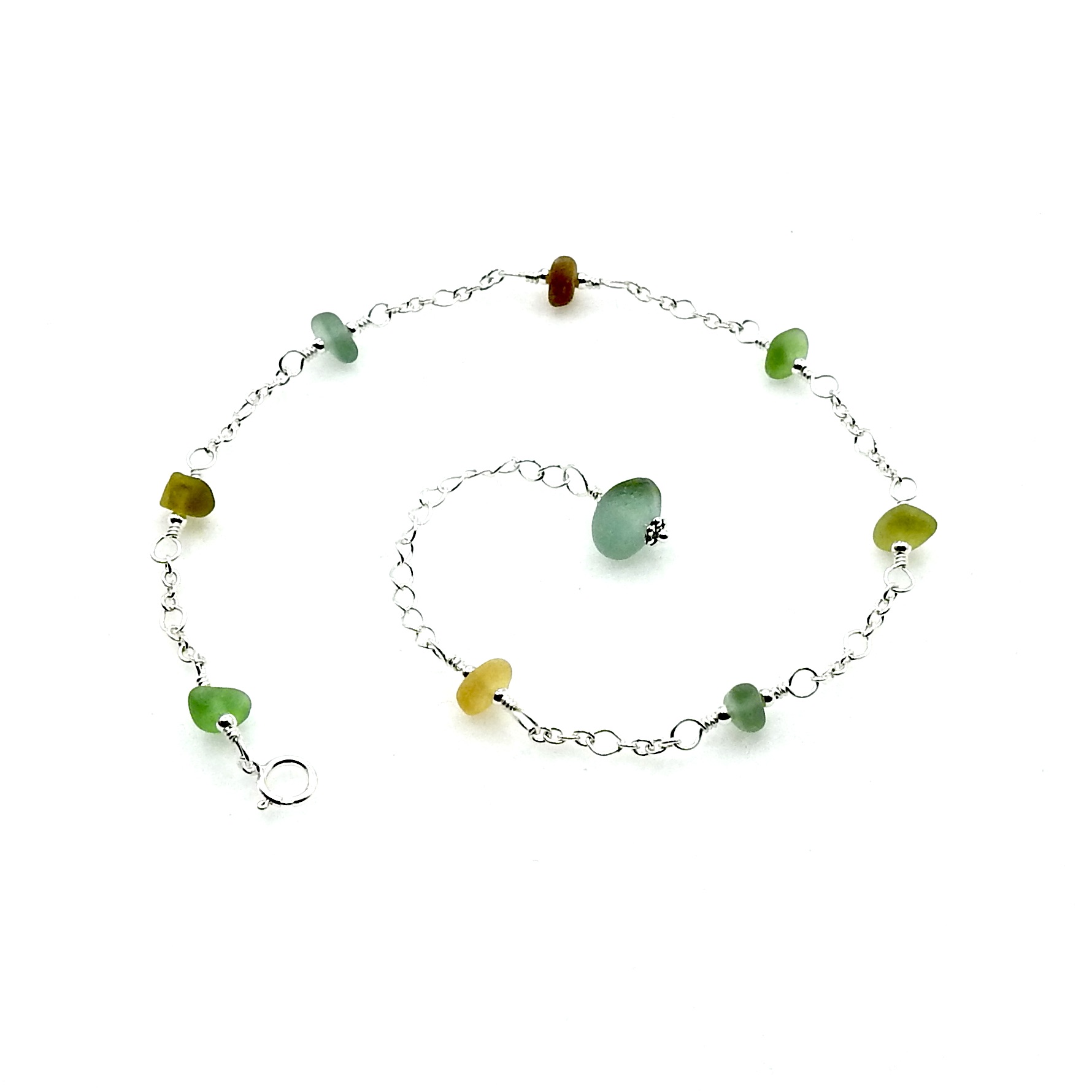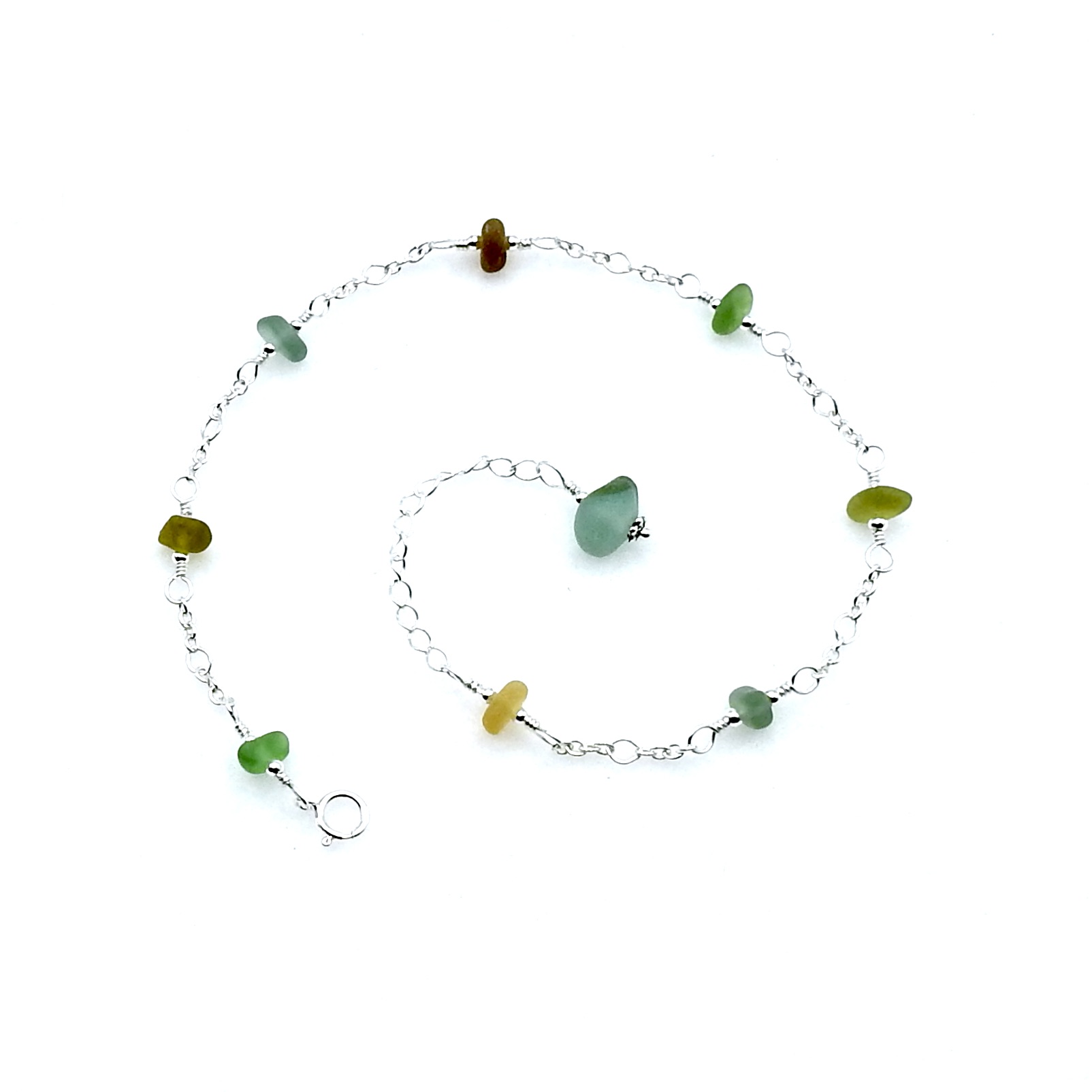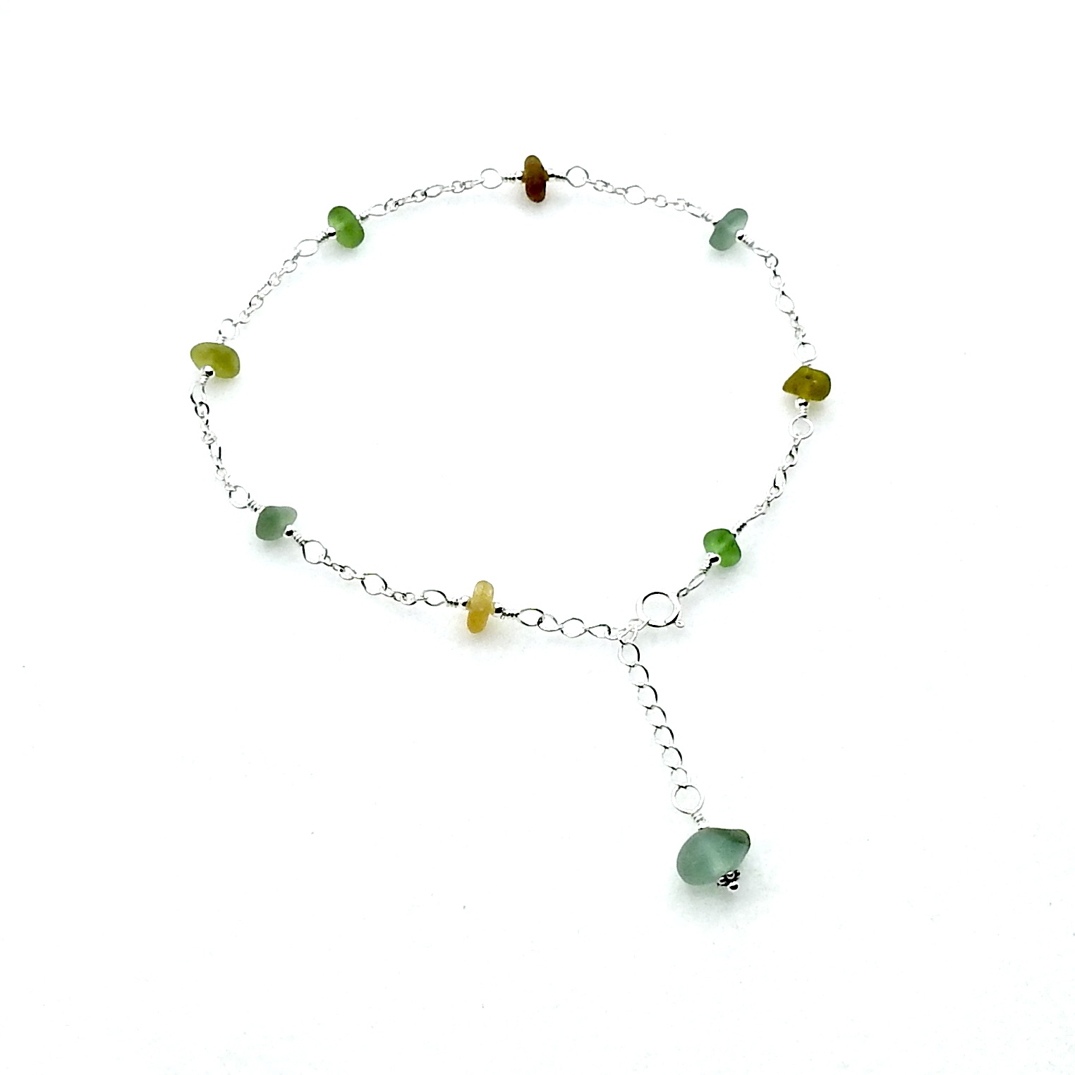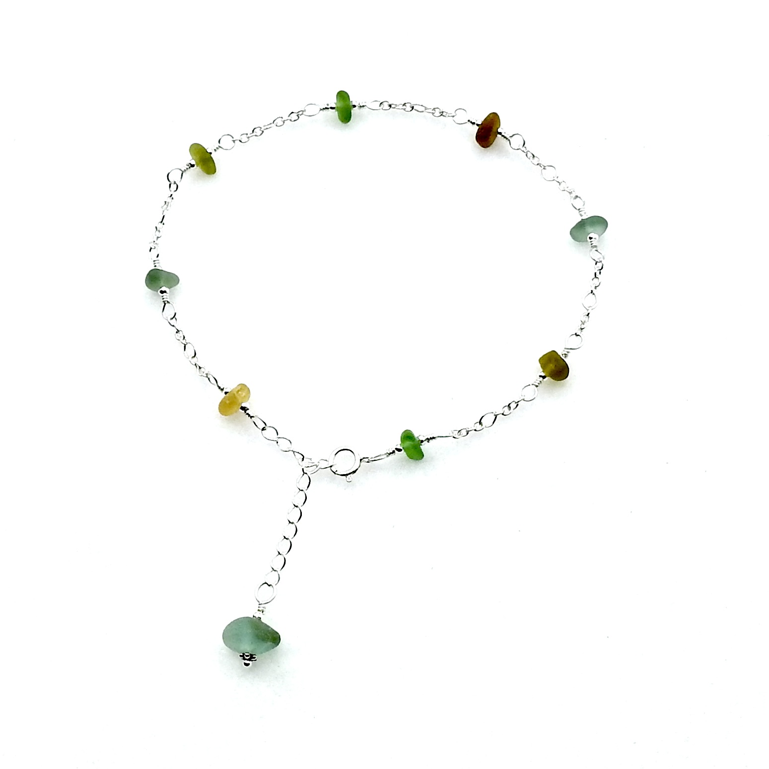 An adjustable anklet, handmade with tiny genuine sea glass pieces in multi colours.