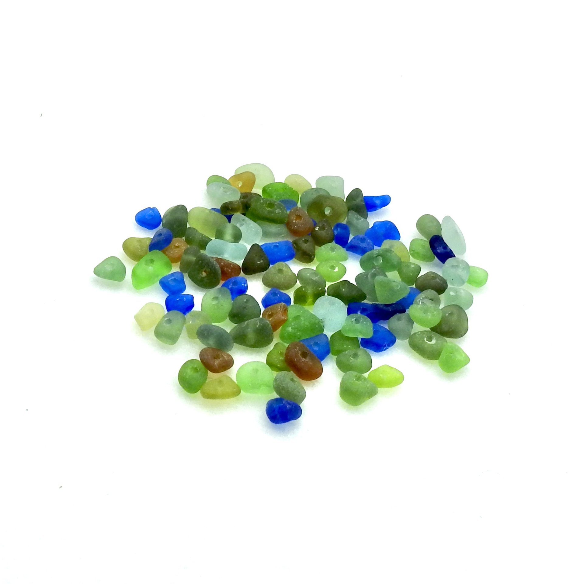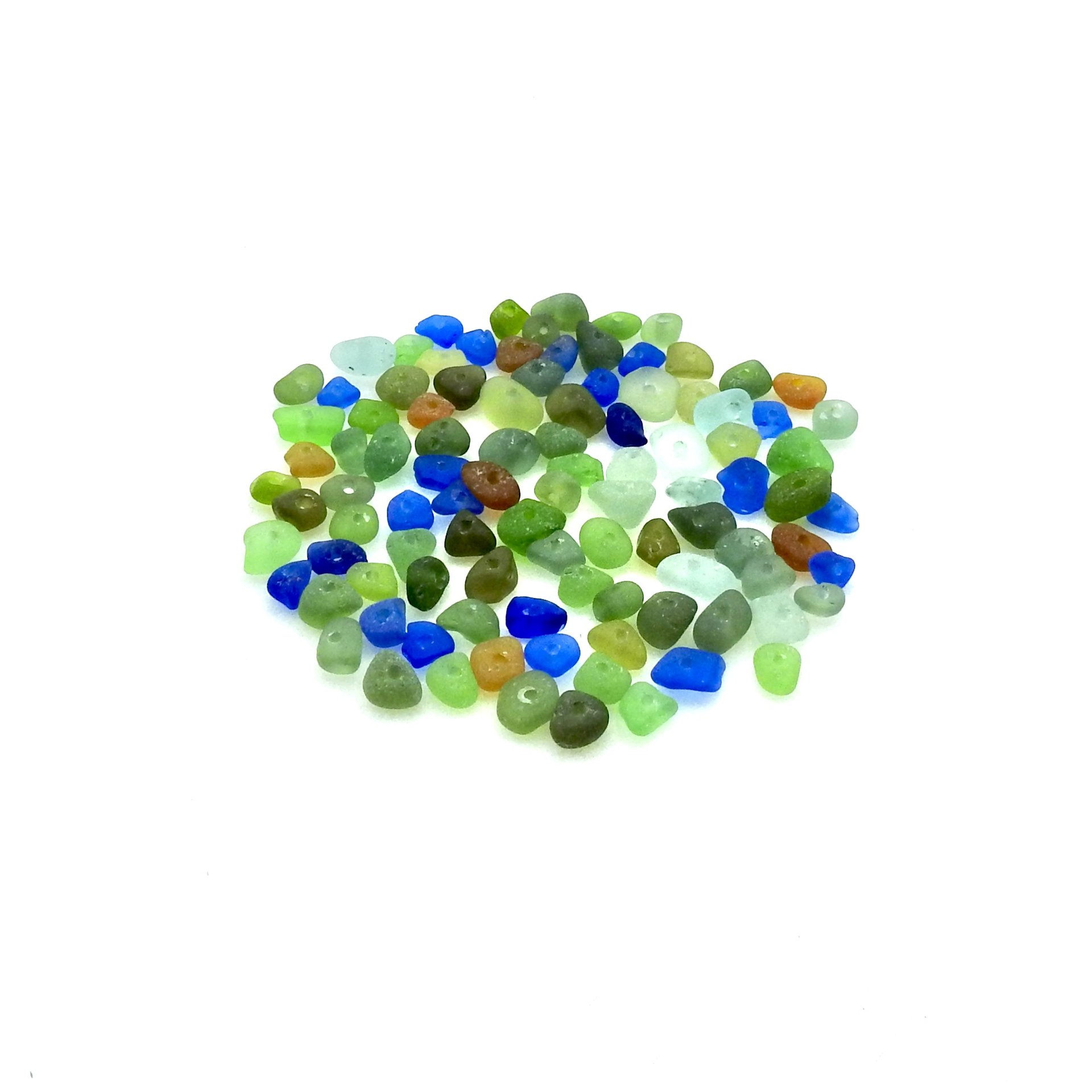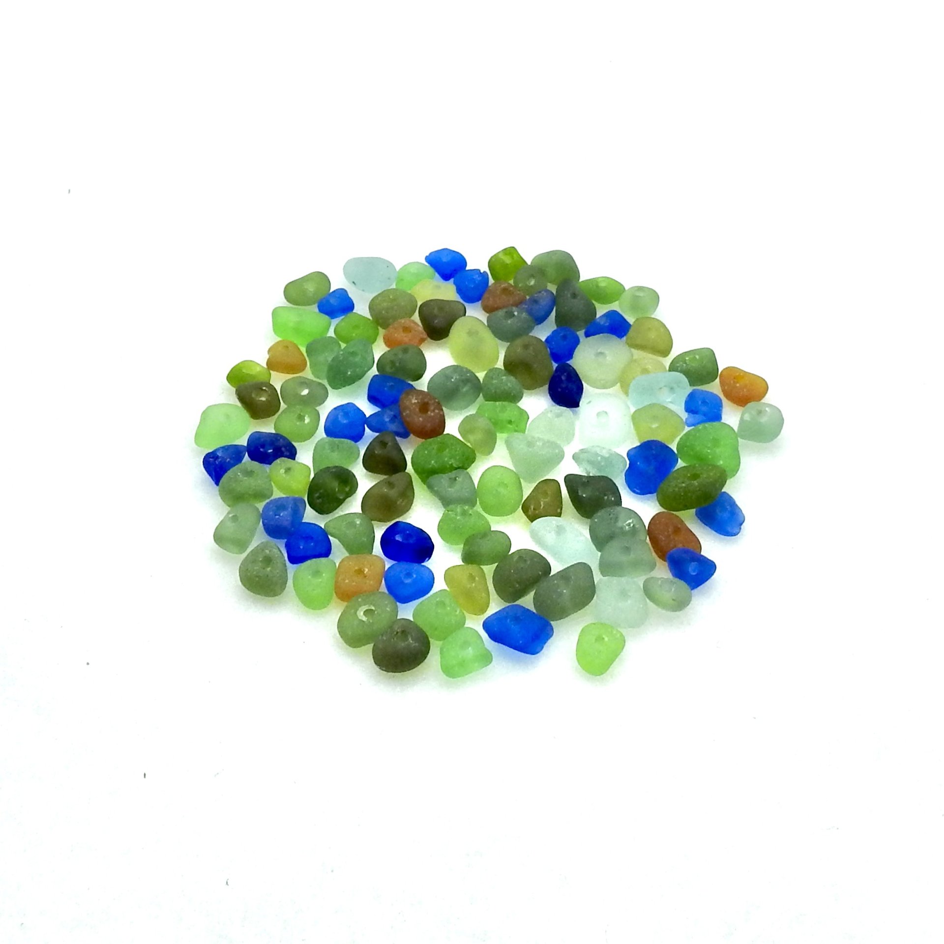Tiny genuine sea glass beads, bulk lot of 100, with centre drilled holes for jewelry making or other DIY beach craft projects.