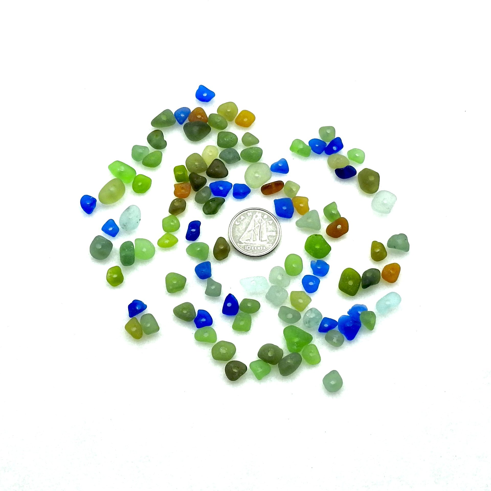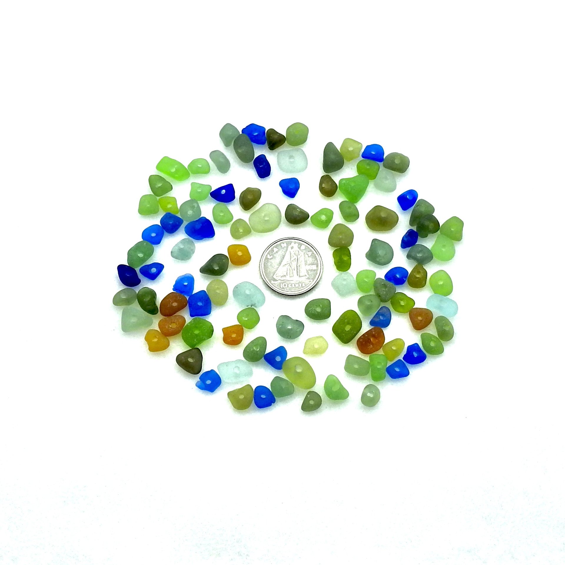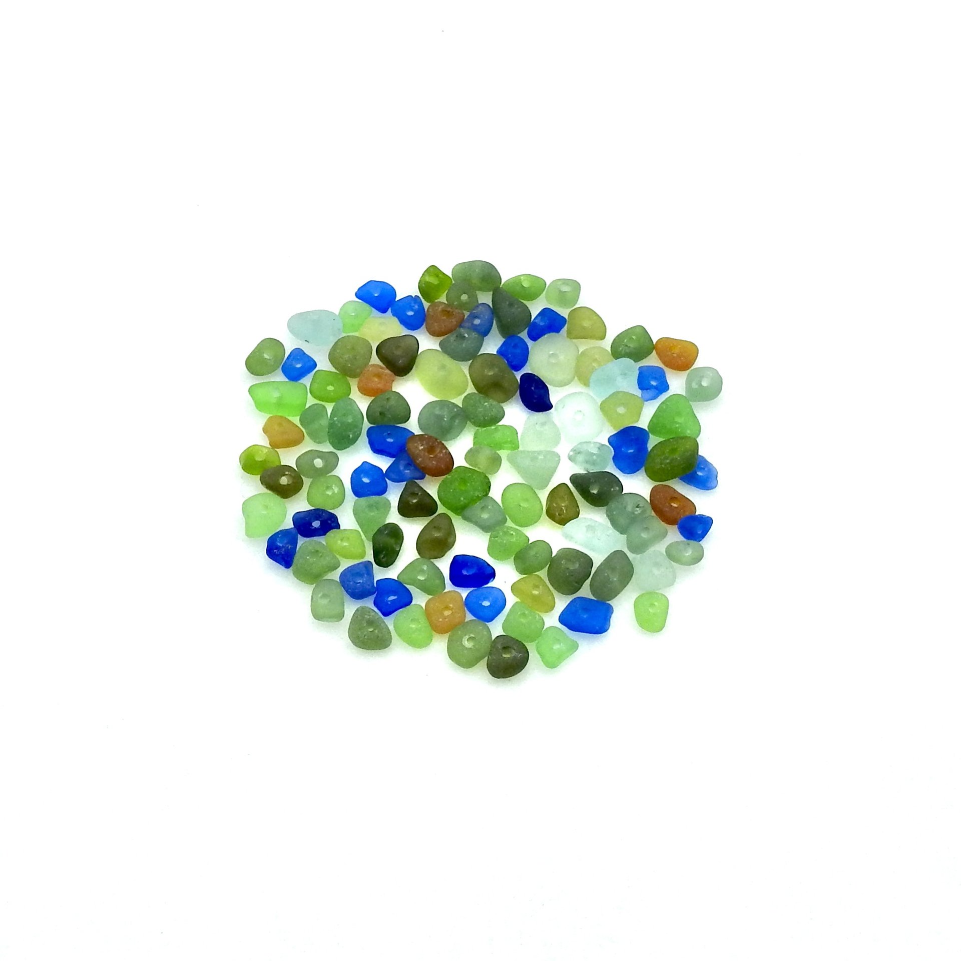 Tiny genuine sea glass beads, bulk lot of 100, with centre drilled holes for jewelry making or other DIY beach craft projects.