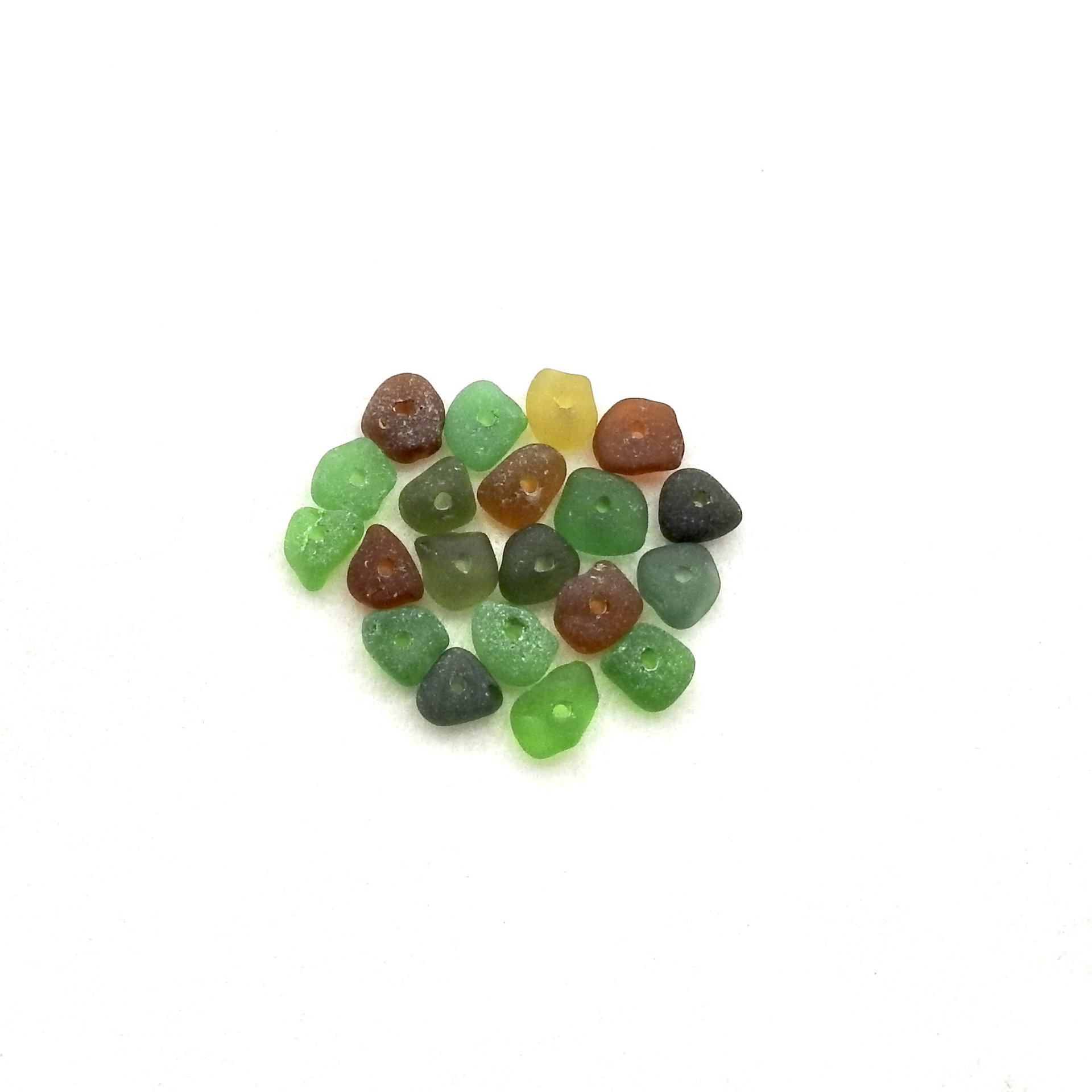 Genuine sea glass beads with center drilled holes, set of 20, in assorted colours for jewelry making or other beach themed crafts.