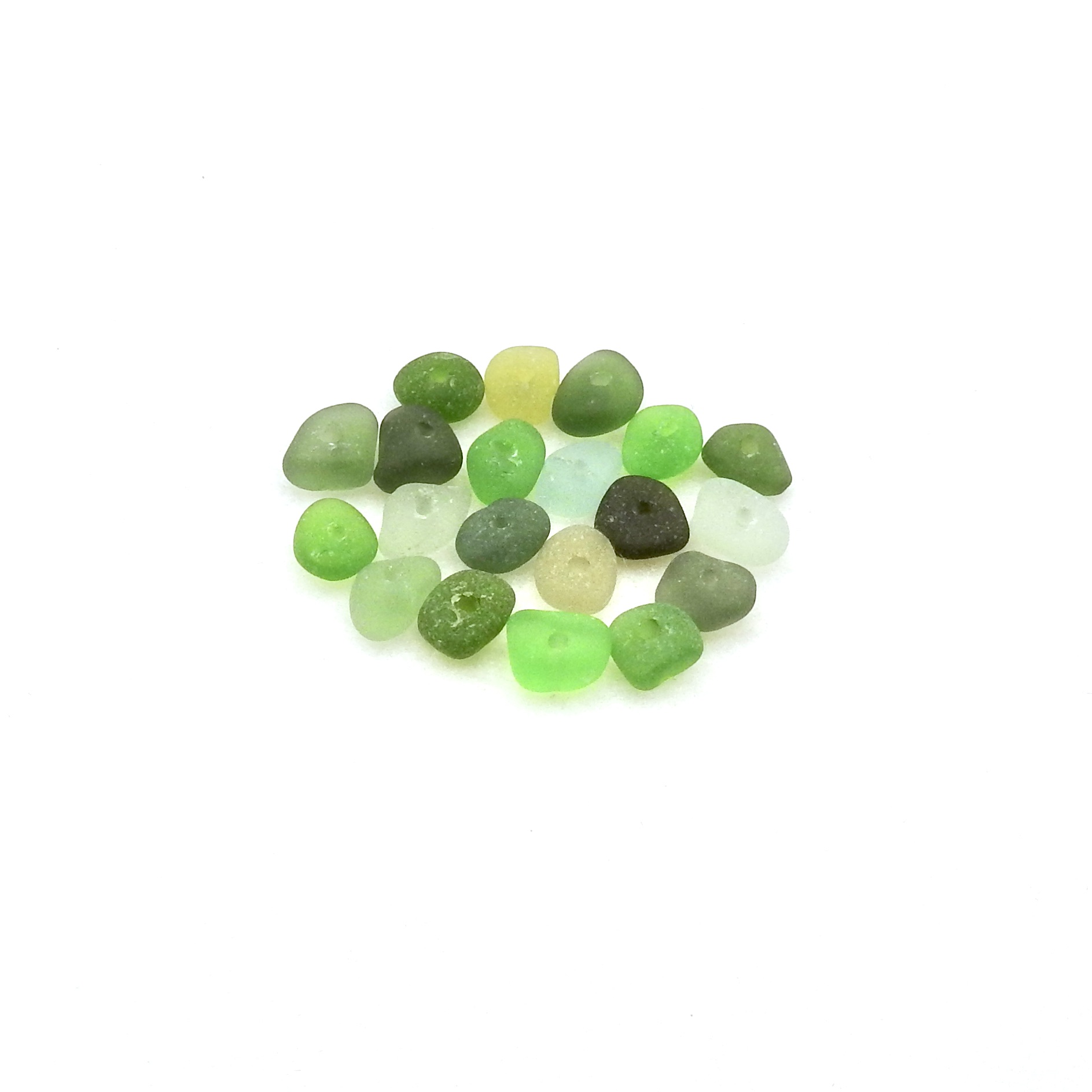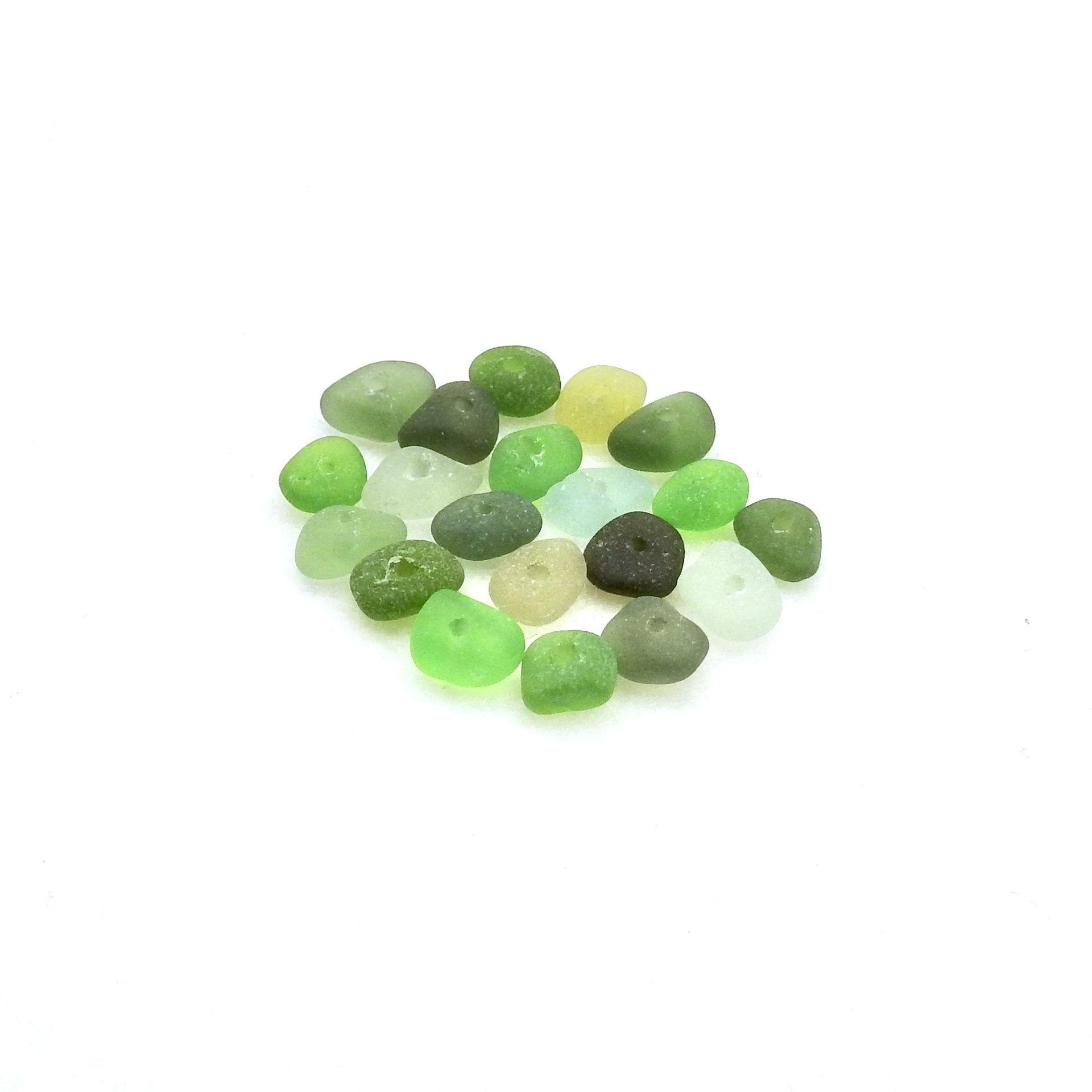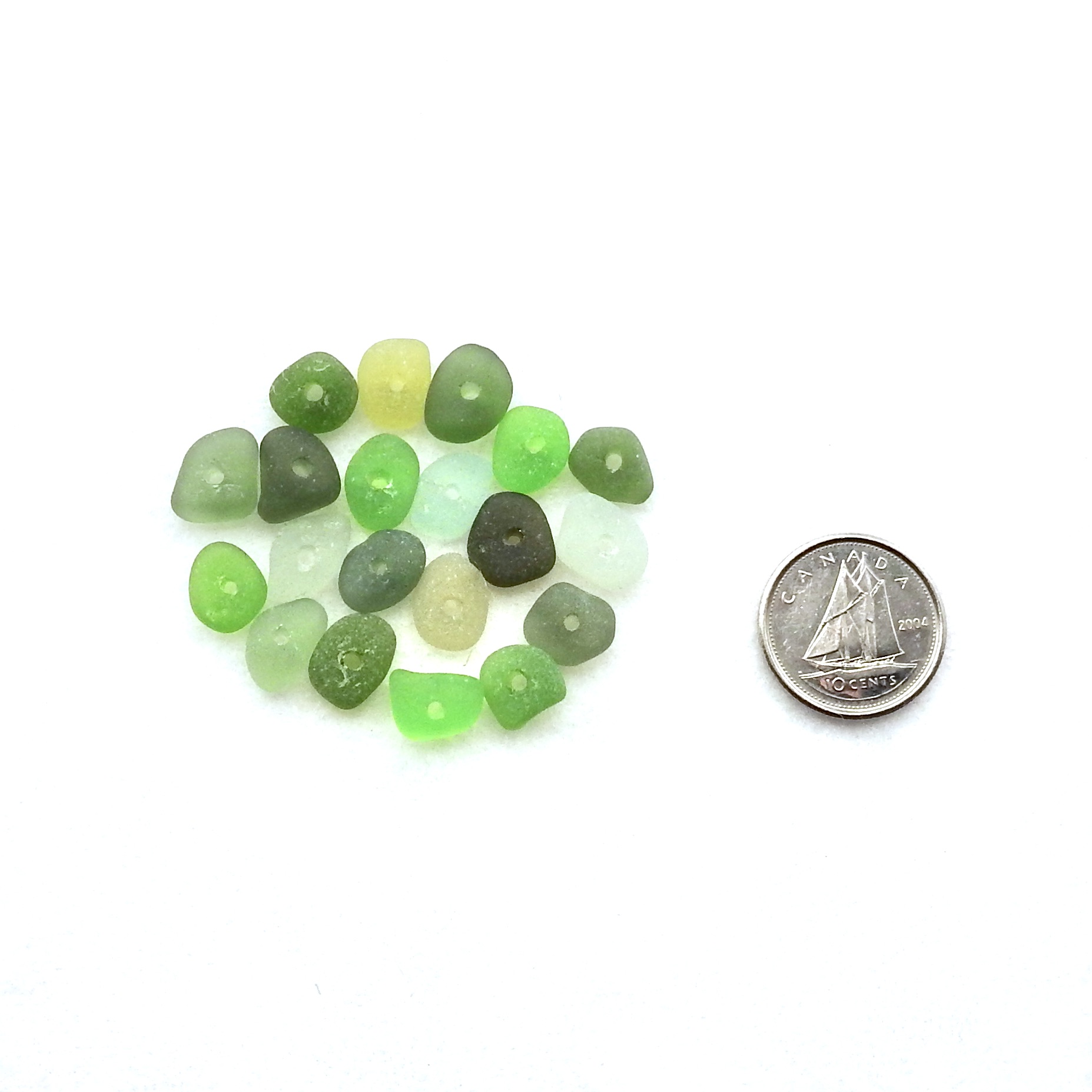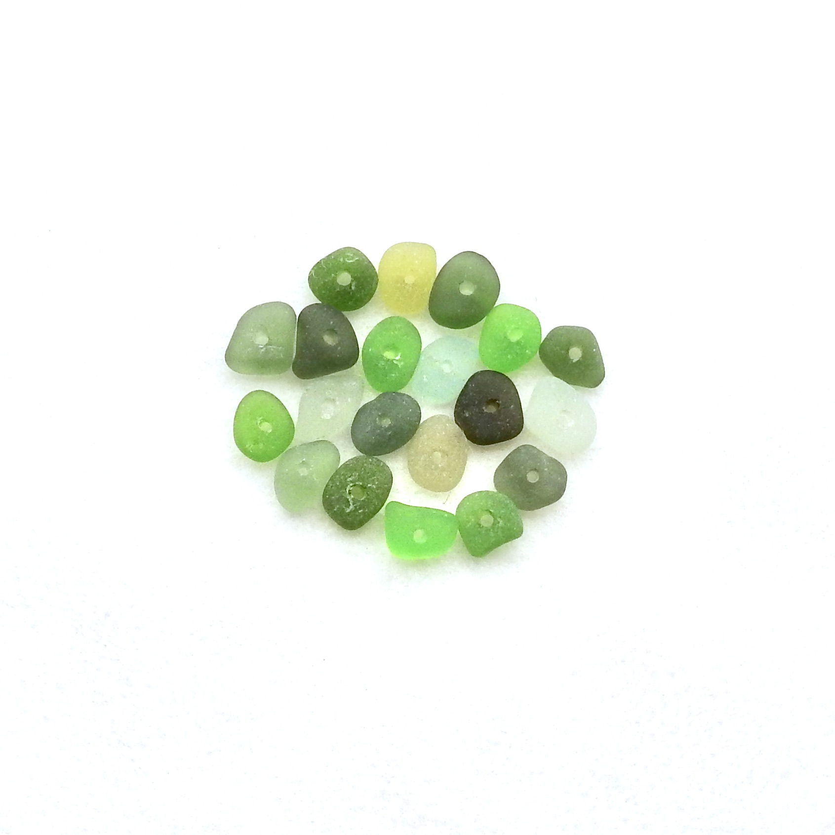 Genuine sea glass beads with center drilled holes, set of 20, for jewelry making or other beach themed crafts.
