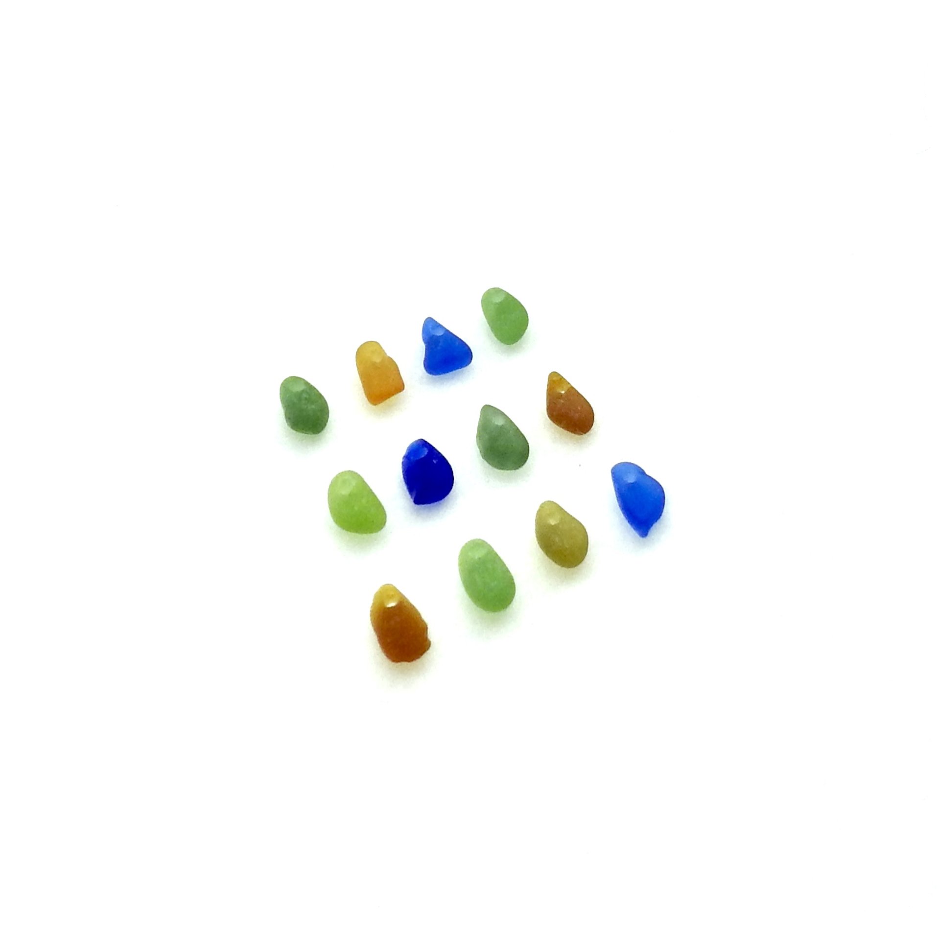 Very tiny genuine sea glass beads, set of 12, with top drilled holes for jewelry making, sew on decoration or other beach themed crafts.