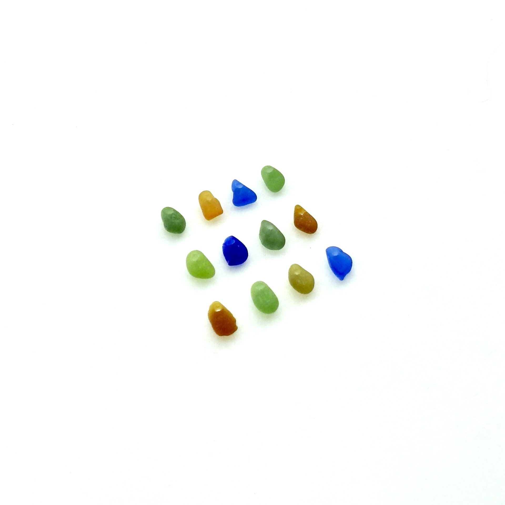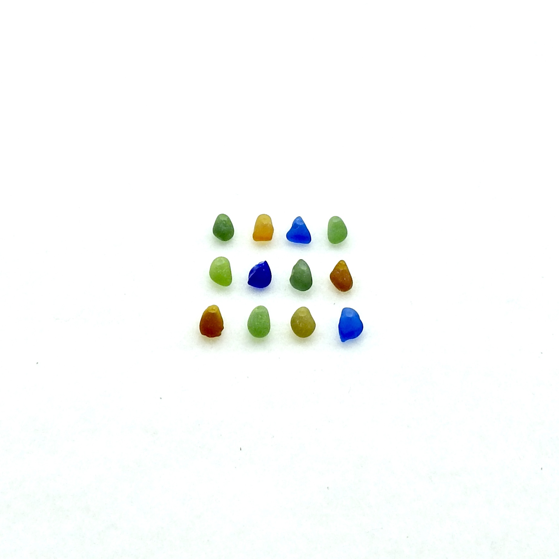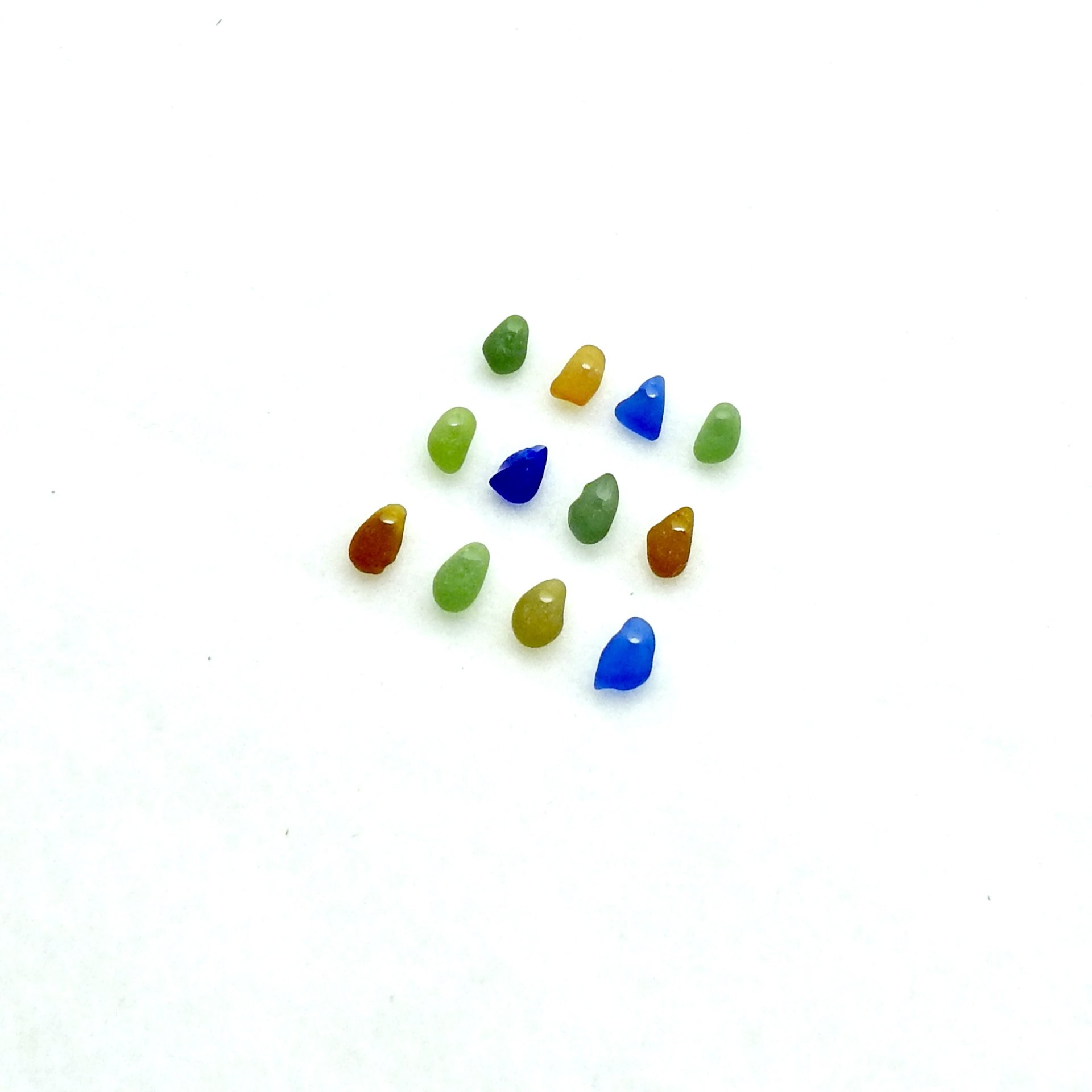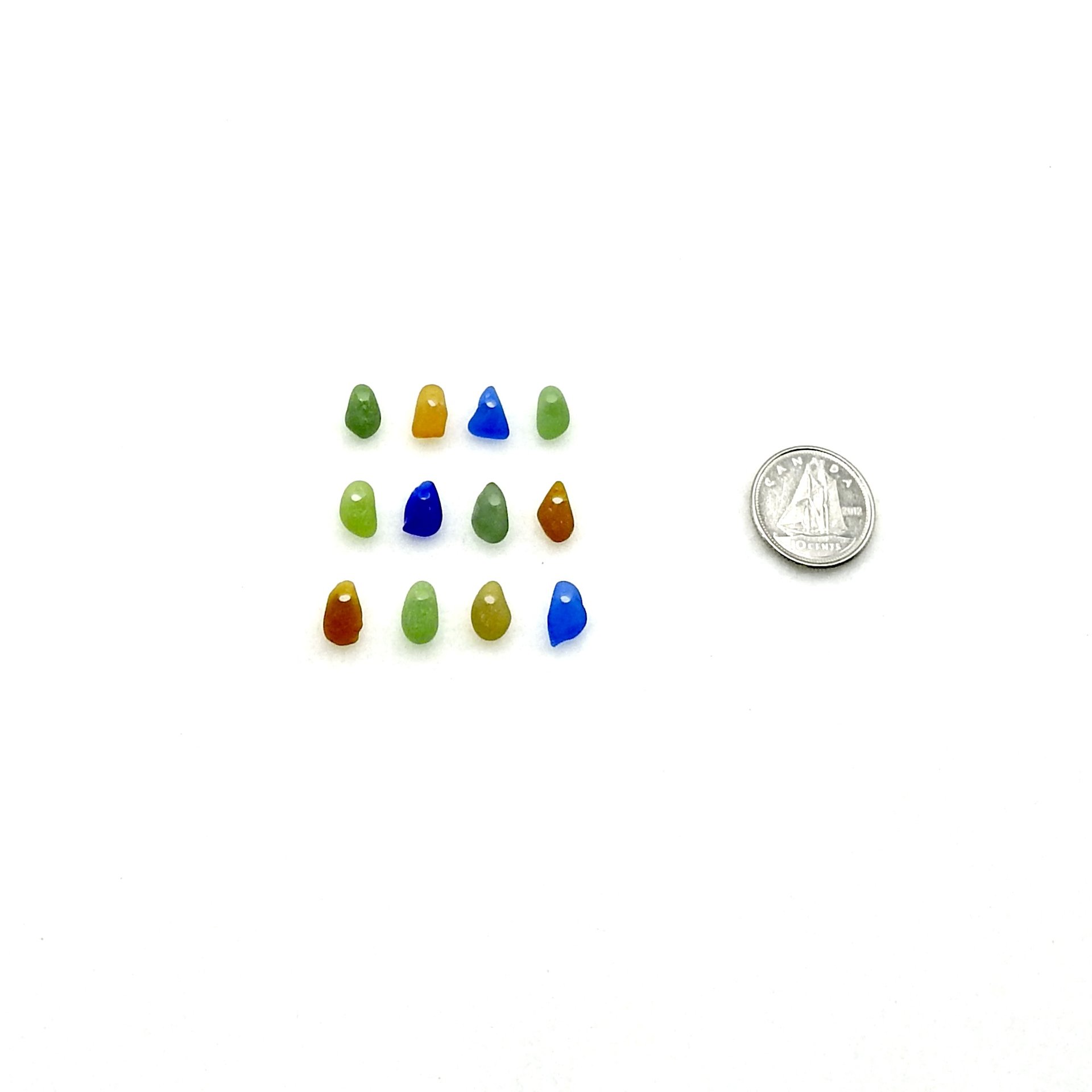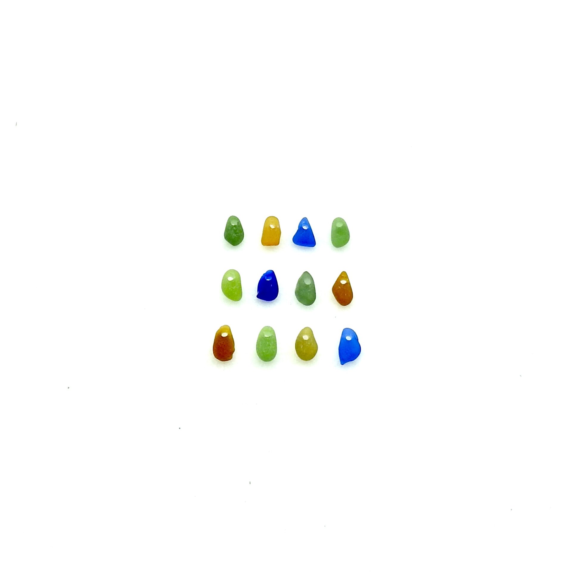 Very tiny genuine sea glass beads, set of 12, with top drilled holes for jewelry making, sew on decoration or other beach themed crafts.