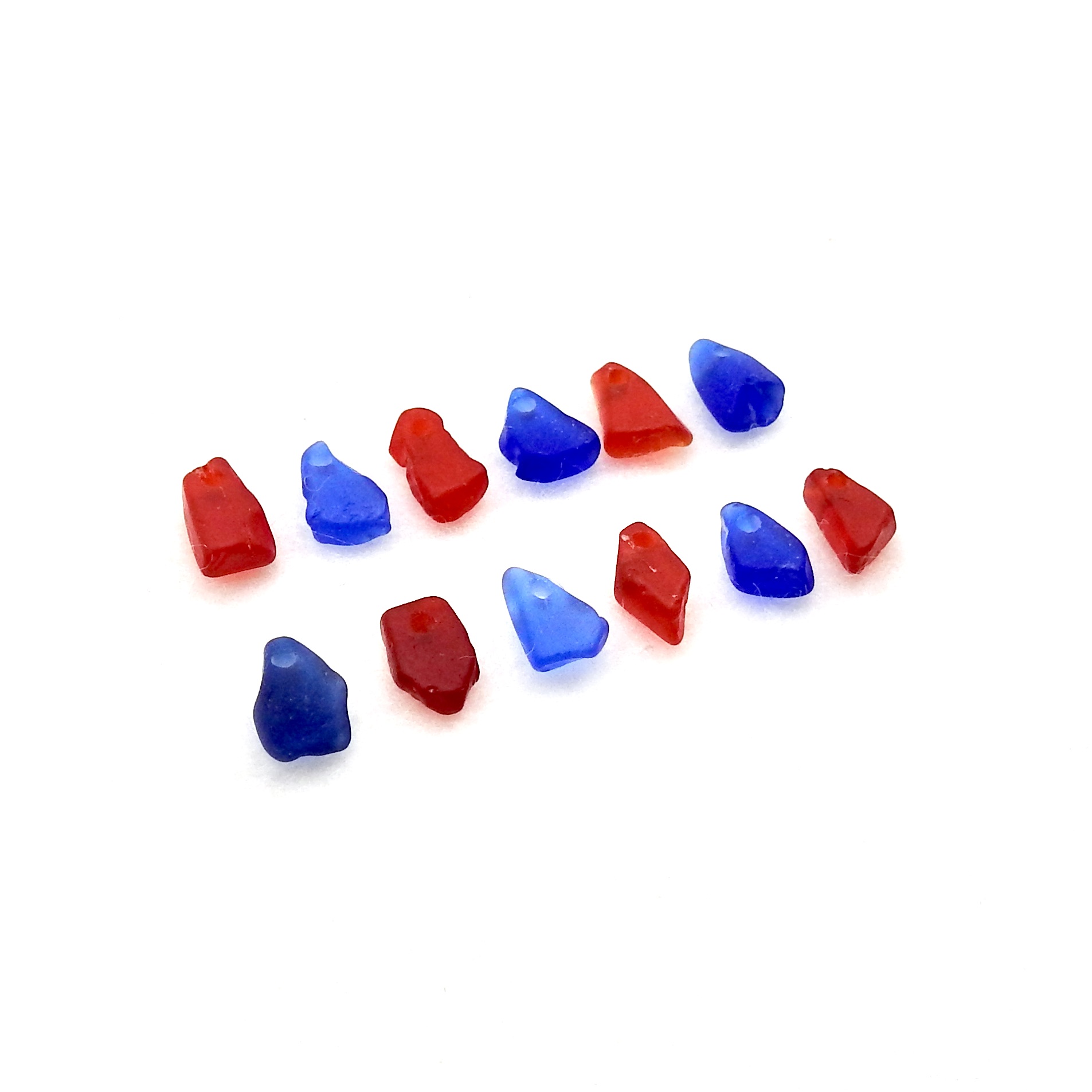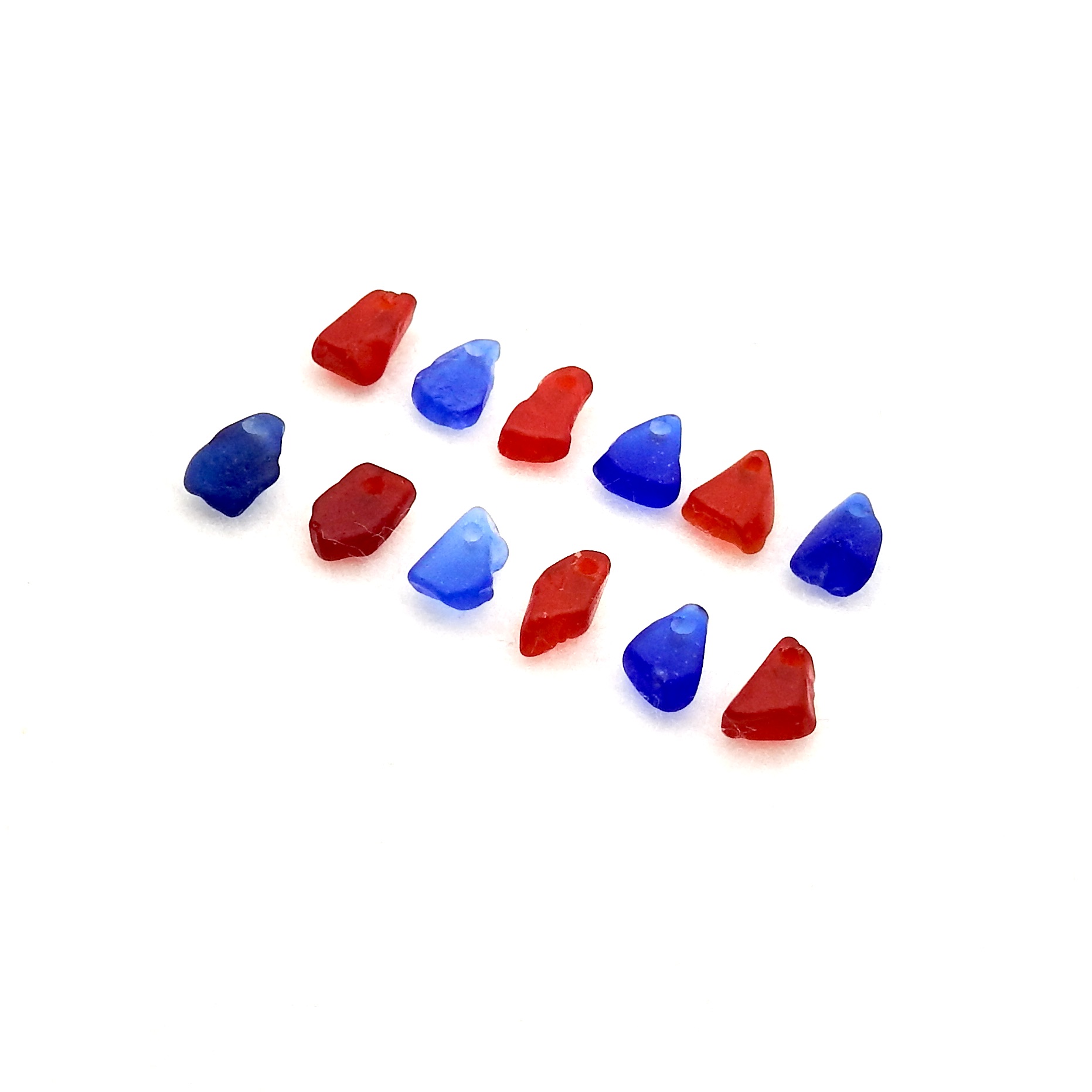 Sea Glass Charms Red Cobalt Blue Drilled Real Beach Beads for Crafts or Jewelry Making
