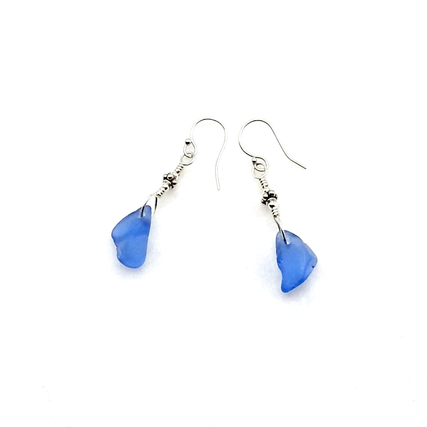 - materials - genuine sea glass charms (just under 1/2" - 12.7mm), sterling silver tiny Bali beads (4mm), sterling silver wire, tiny round beads and pierced ear wires