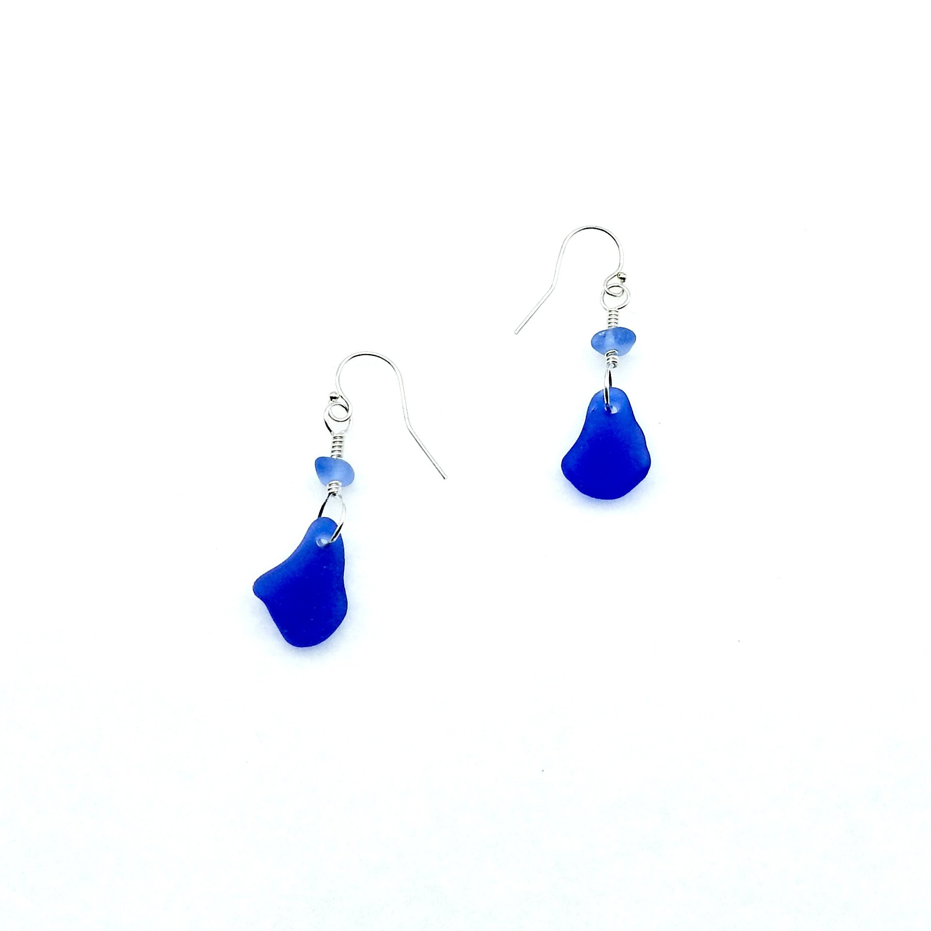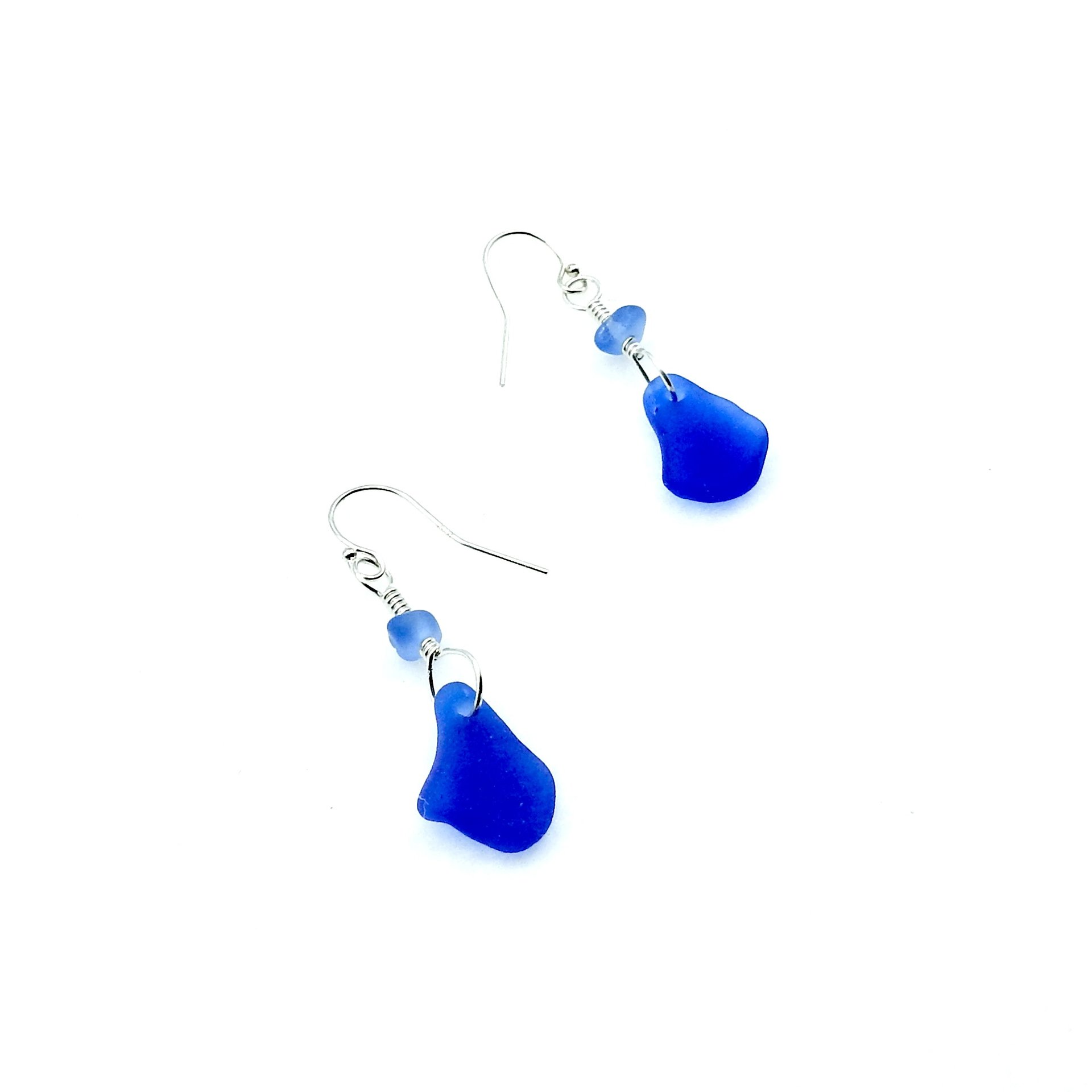 Sea Glass Earrings Handmade Cobalt Cornflower Blue Silver Dangles for Women
