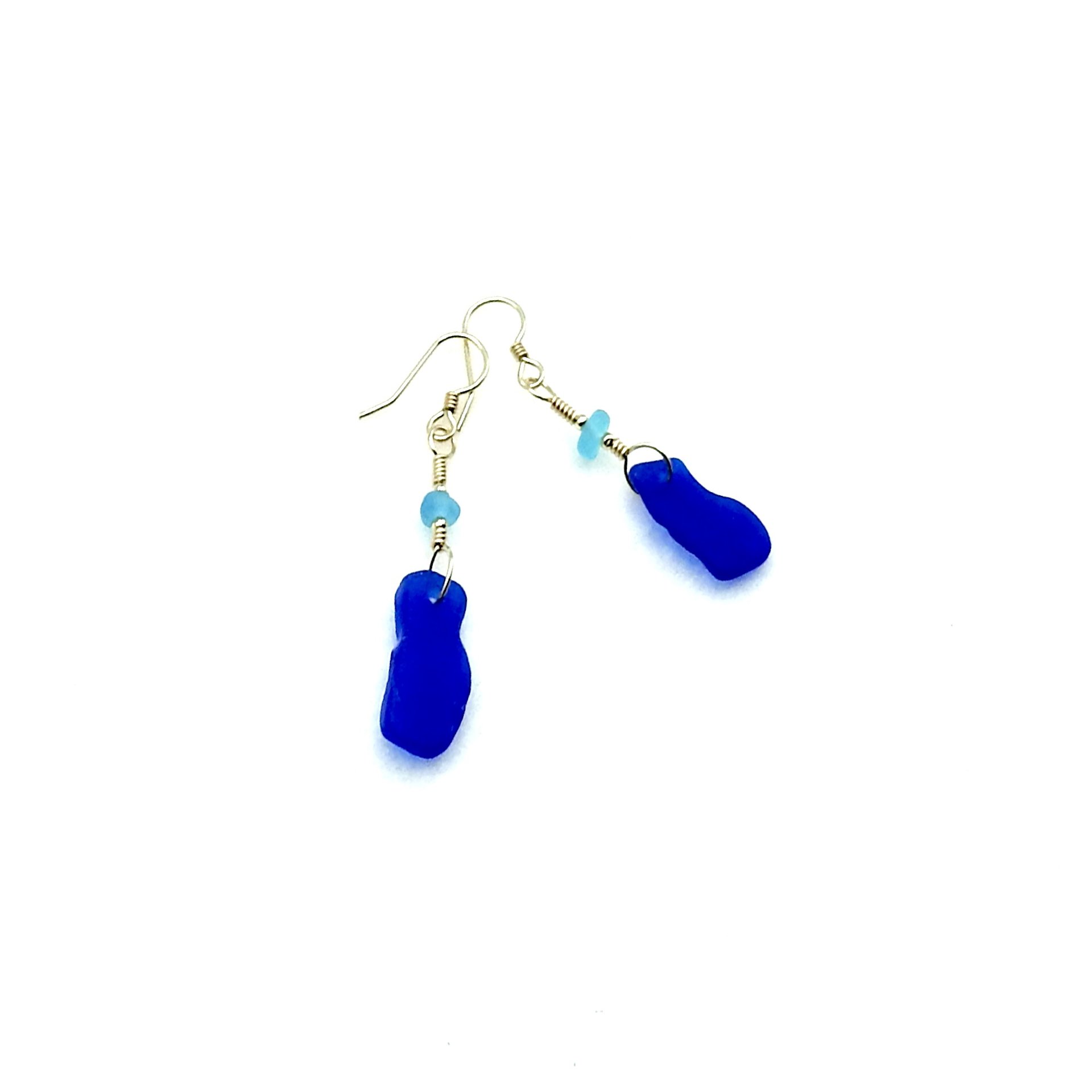 These sea glass pieces were all naturally surf tumbled. The tiny aqua blue pieces are from England while the cobalt blue charms are from Puerto Rico.