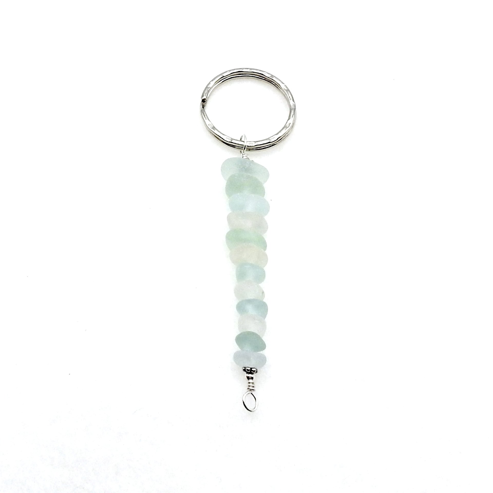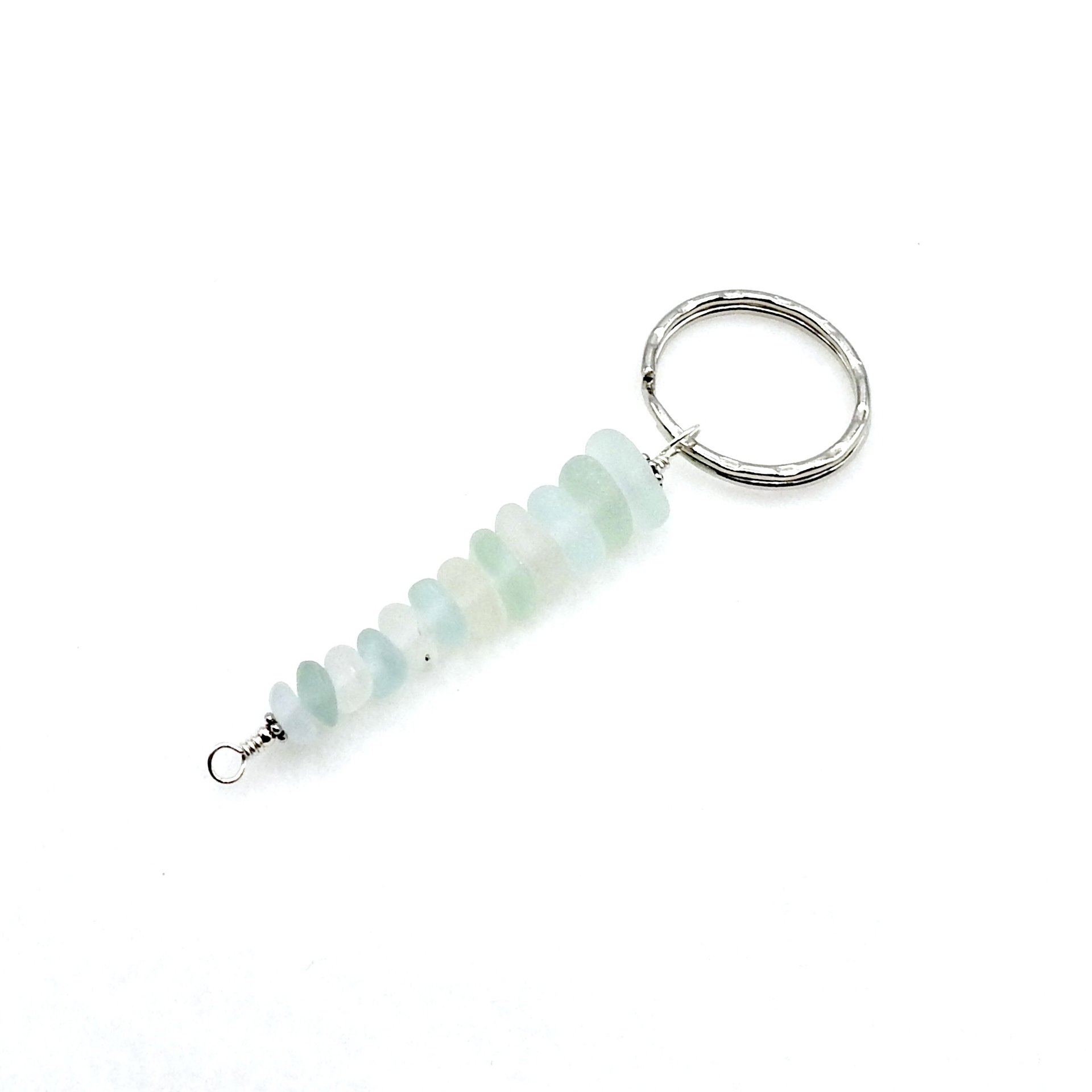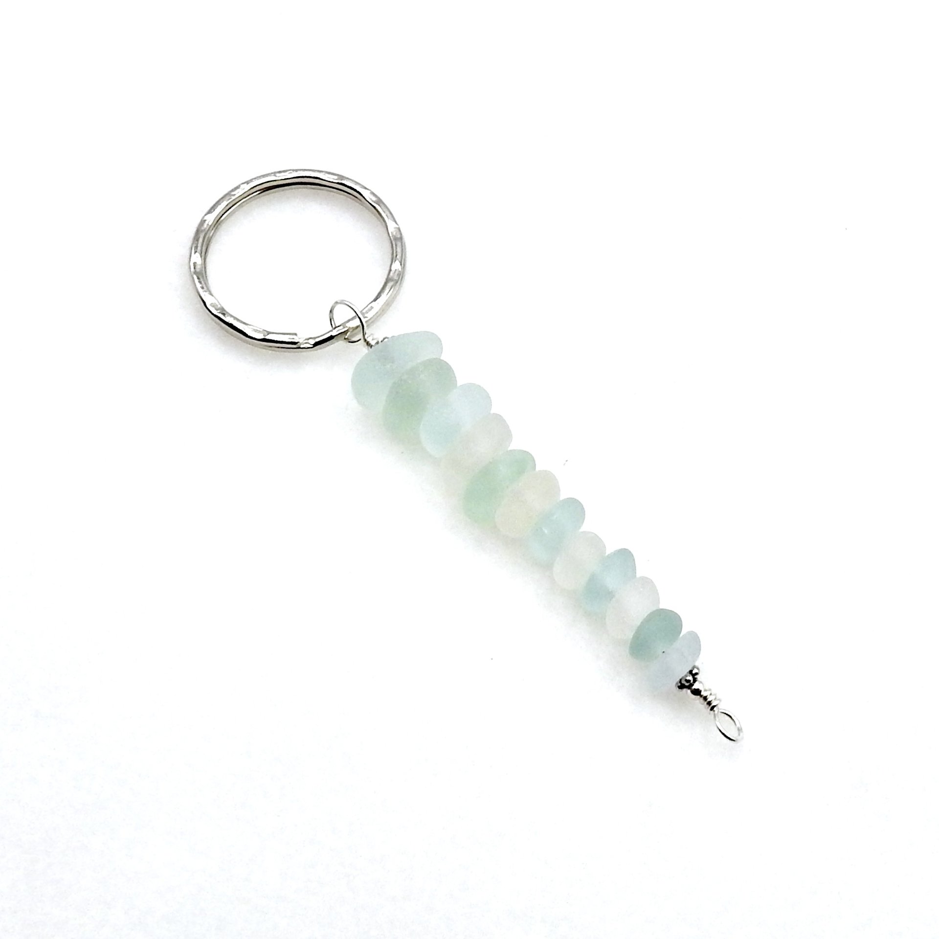 A soft pastel keychain, handmade with genuine sea glass with a silver hammered design keyring.