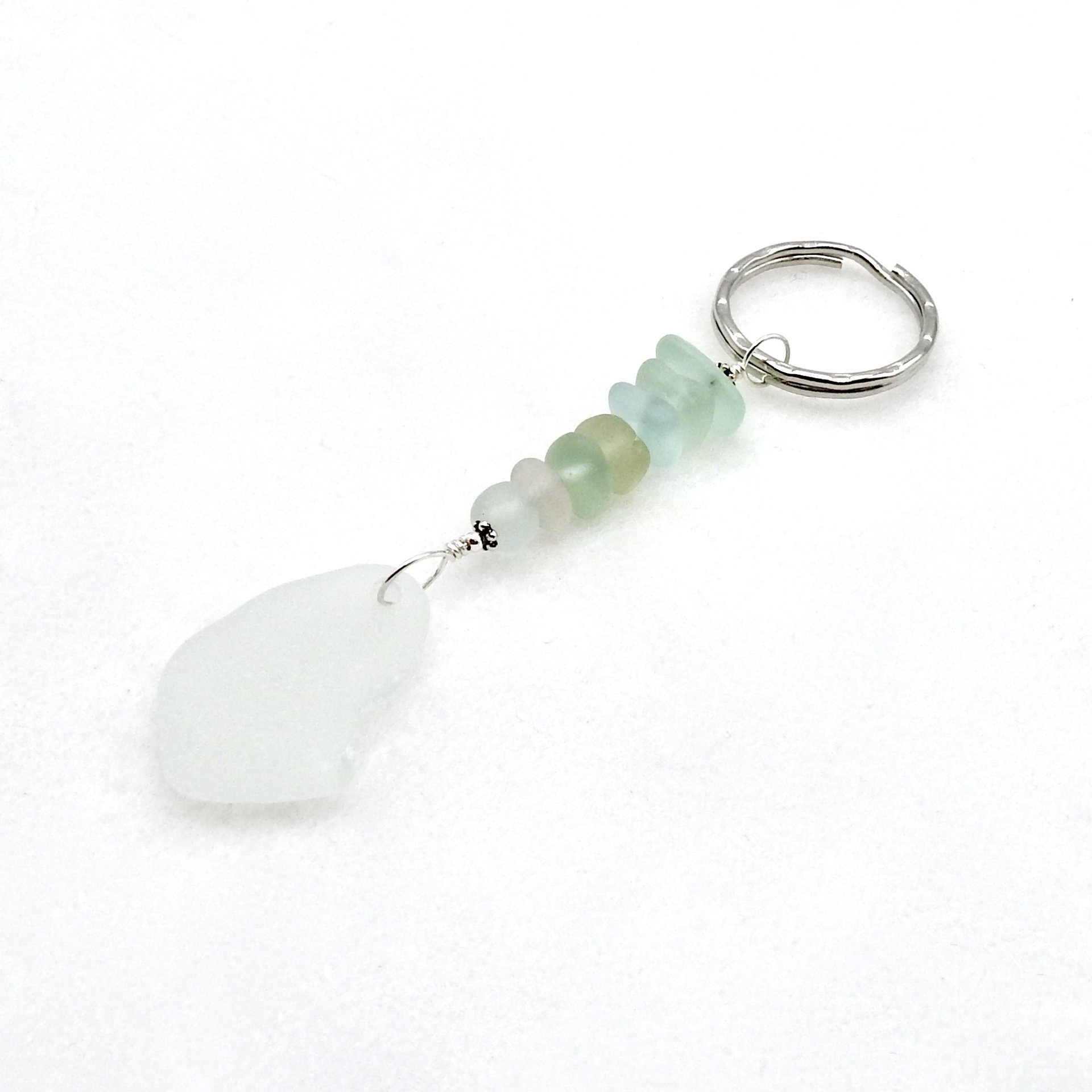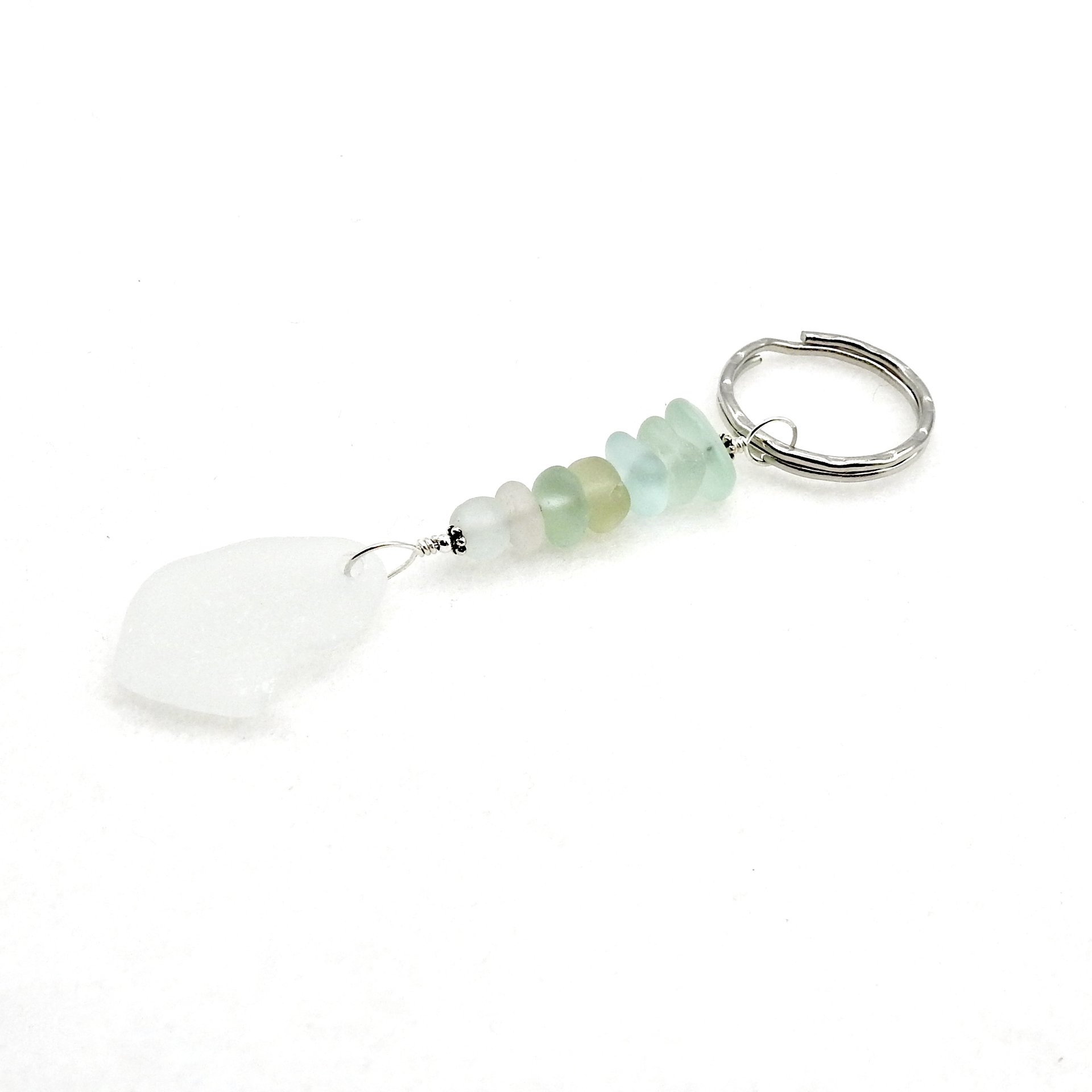 Sea Glass Keychain White and Pastel Beach Keyring Canada