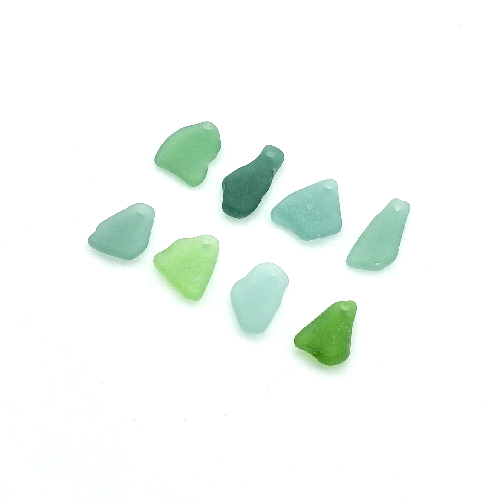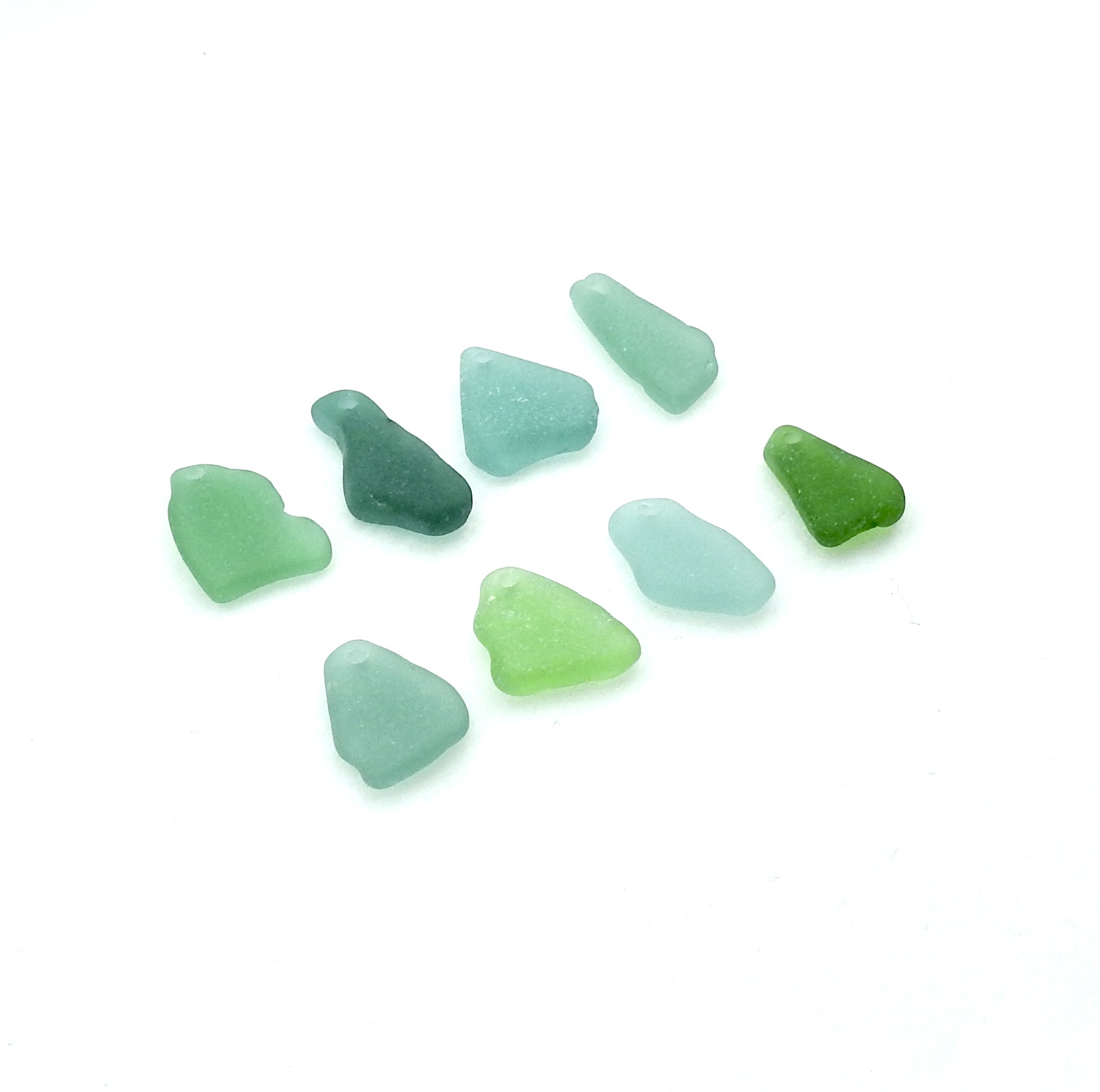 Genuine sea glass pendants, set of 8, with top drilled holes for jewelry making or other beach themed crafts.