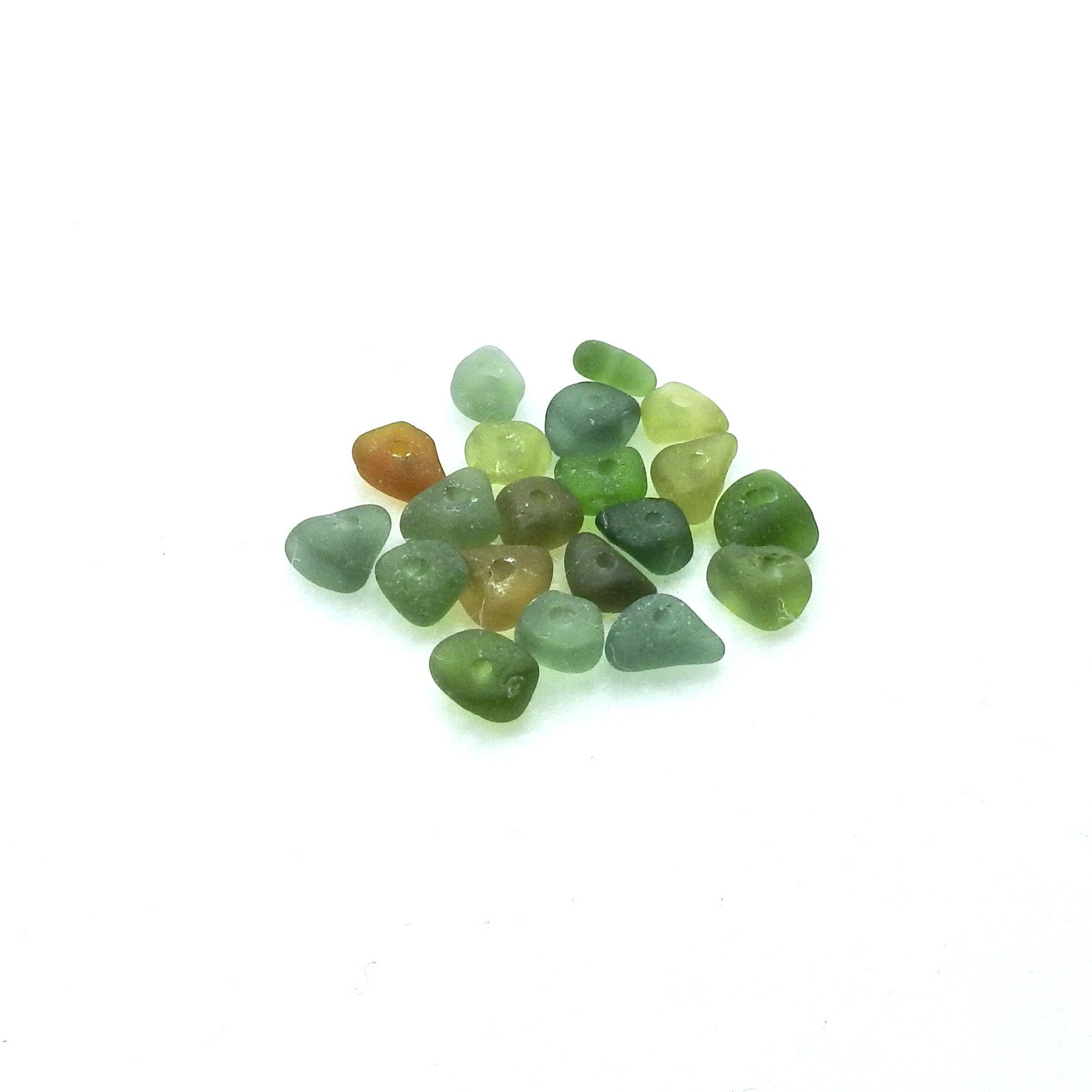 Tiny genuine sea glass beads, set of 20, in assorted colours with center drilled holes for jewelry making or other beach themed crafts.