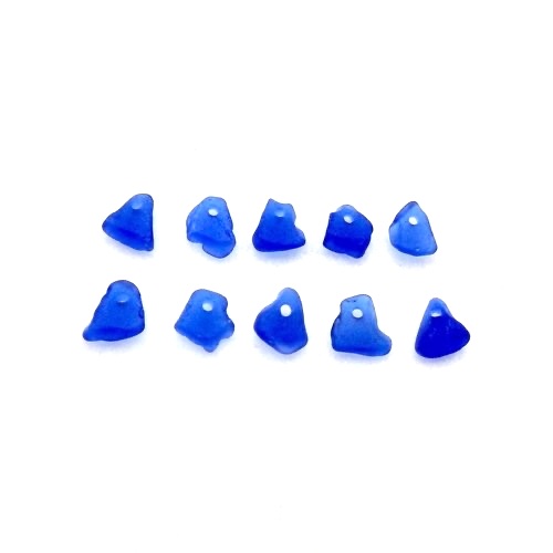 Tiny genuine sea glass charms, set of 10 cobalt blue with top drilled holes for jewelry making, sew on fringe or other crafts.