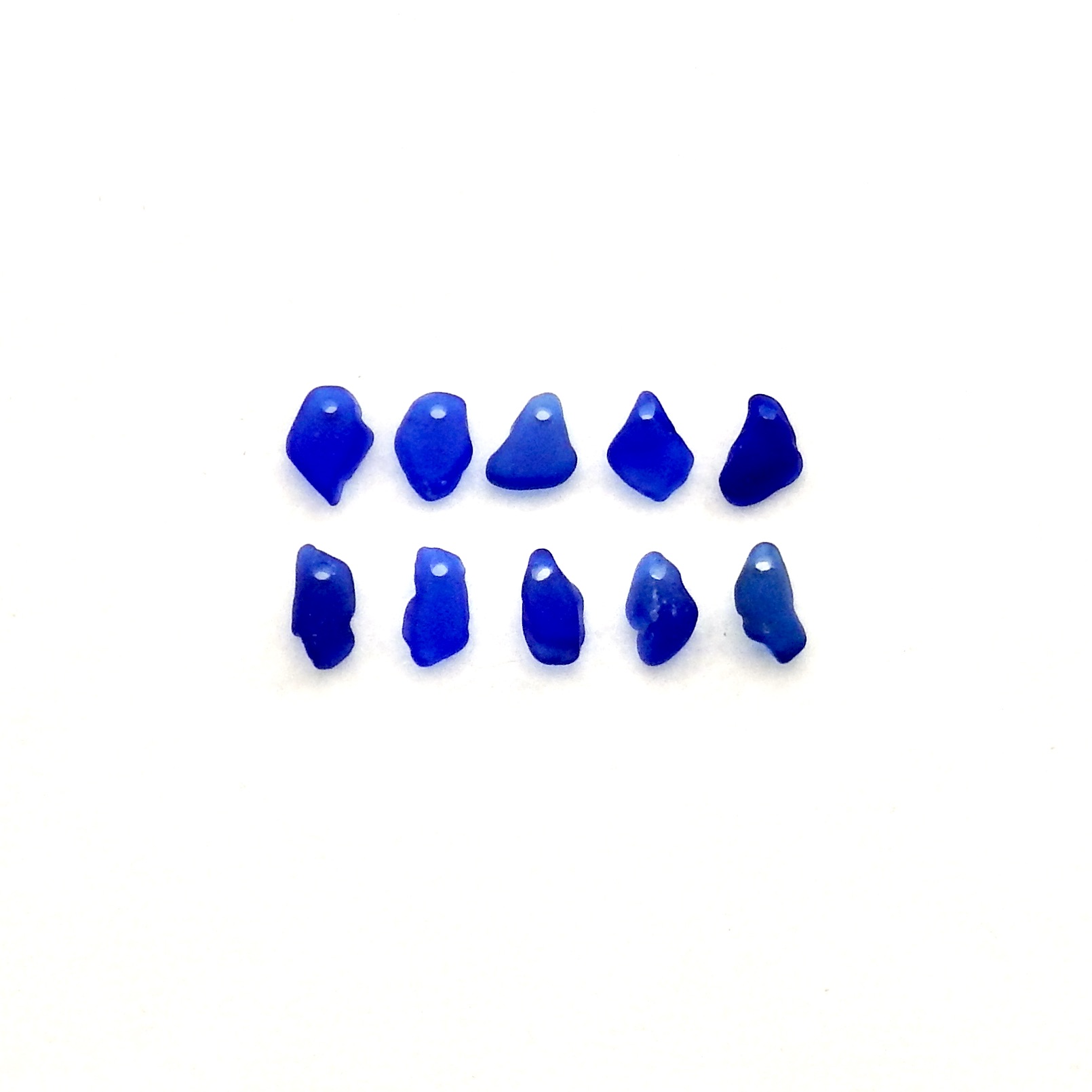 This listing includes 10 tiny genuine sea glass charms, in shades of cobalt blue with top drilled holes for jewelry making or other beach themed crafts.