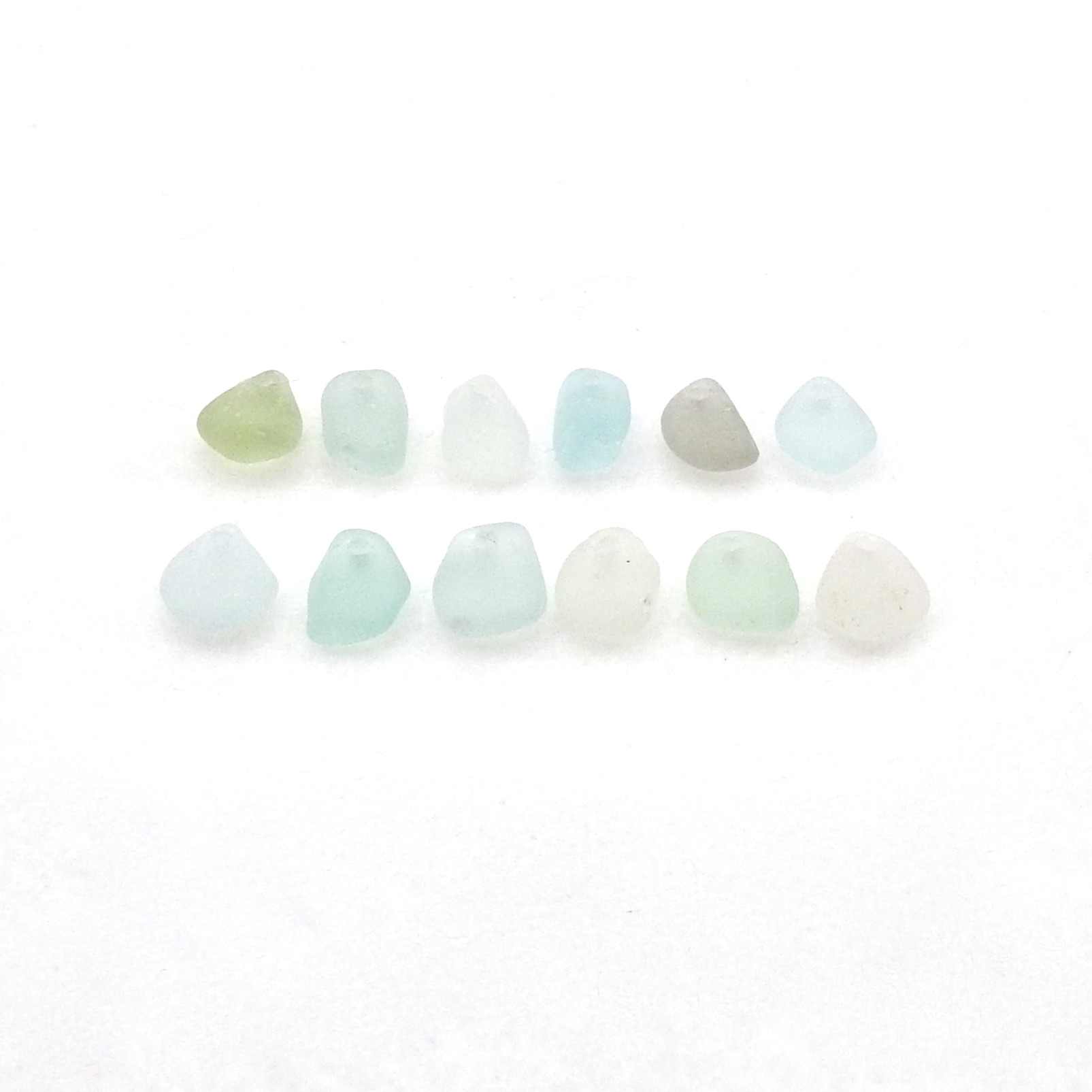 This listing includes 12 tiny genuine sea glass pieces in soft pastel colours, with top drilled holes for jewelry making, sew on for fringe or decoration and other beach themed crafts.