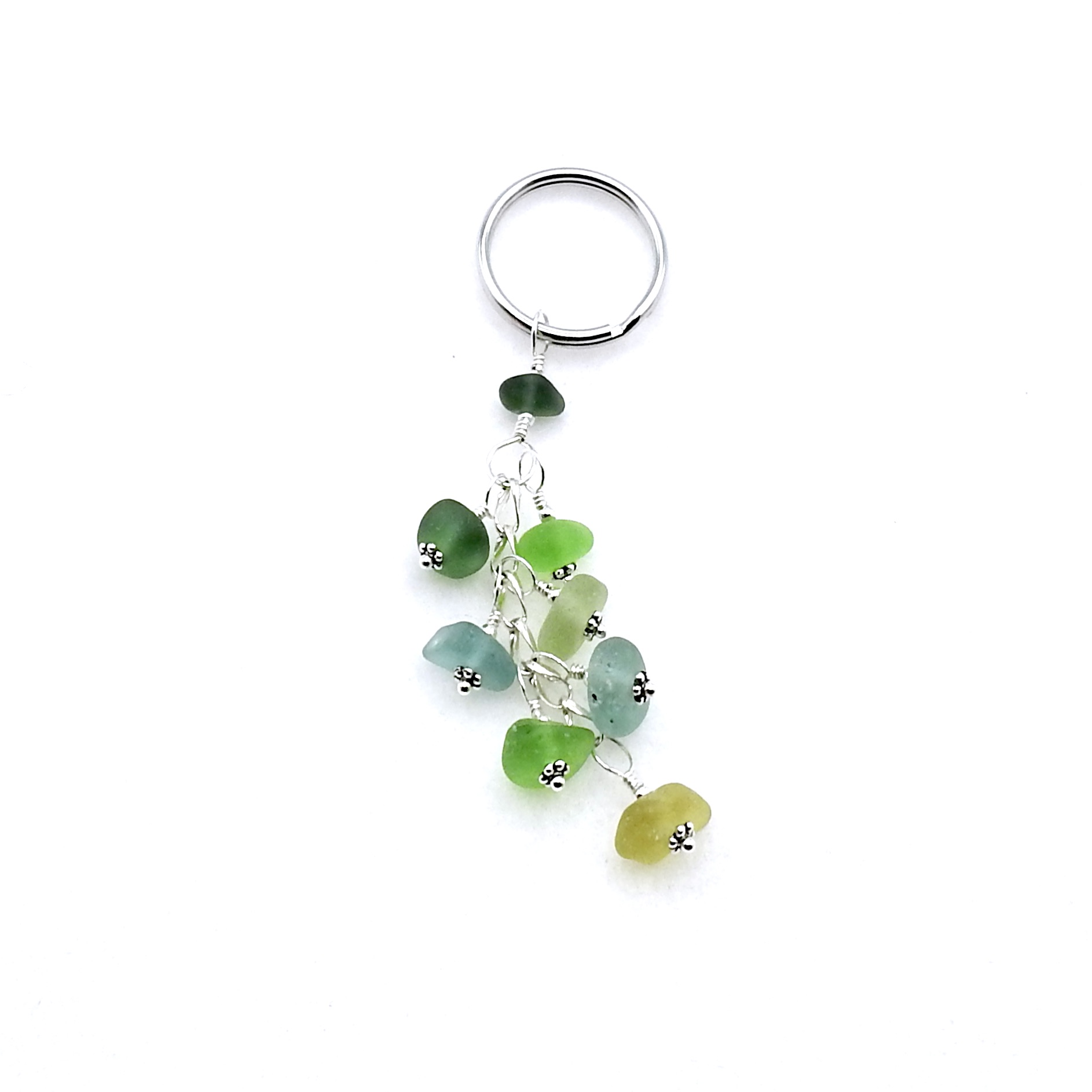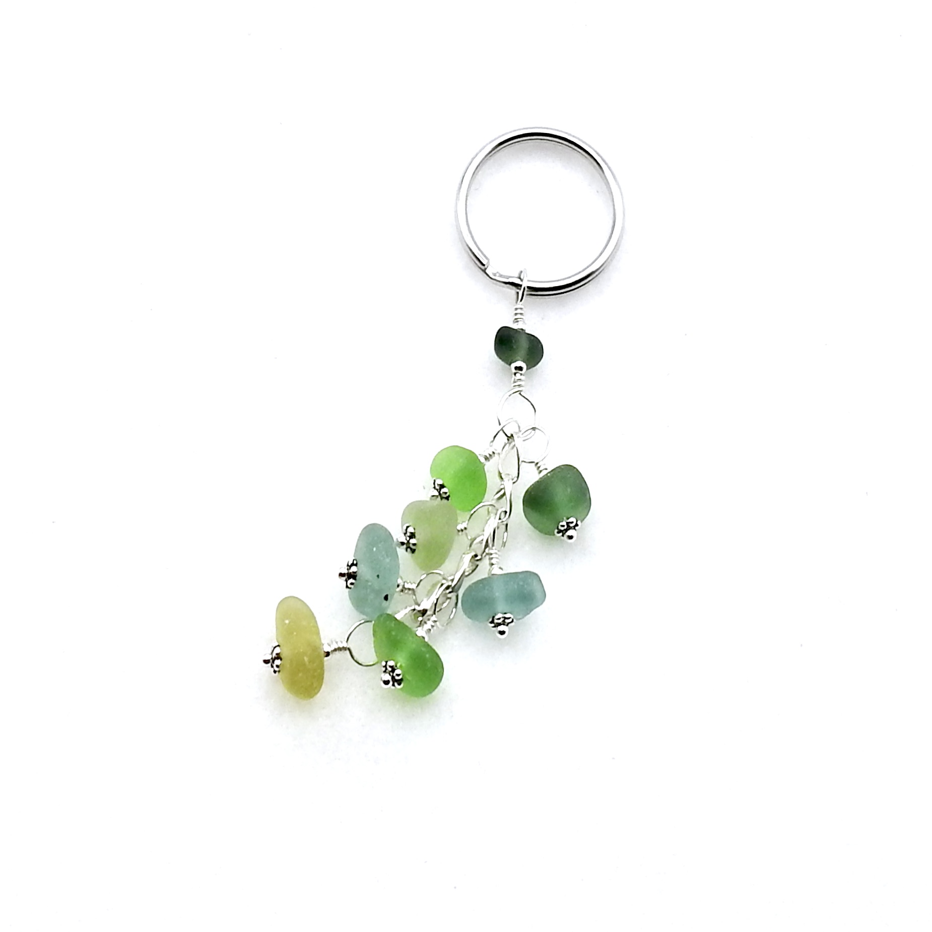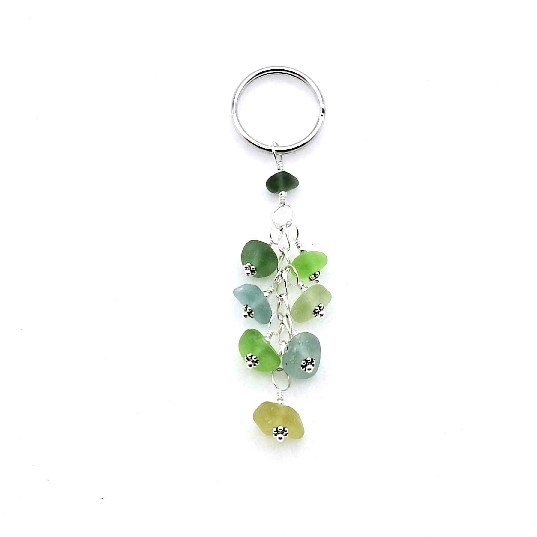 A dangly keychain, handmade with genuine sea glass pieces in multi colours.